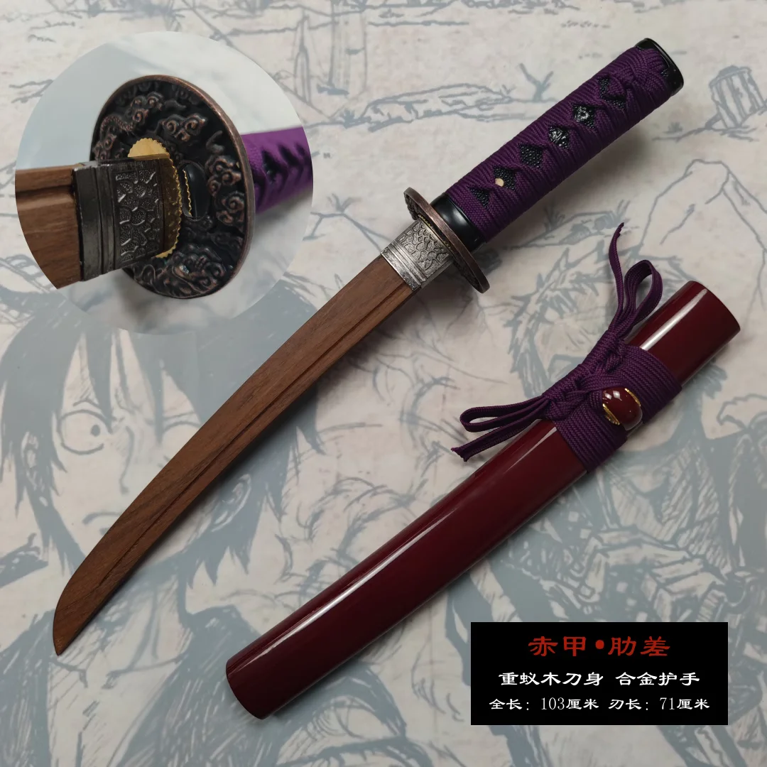 55cm Japanese Samurai Katana Wakizashi Training Sword, Quality Log Wenge Wood Blade, Lacquered Solid...