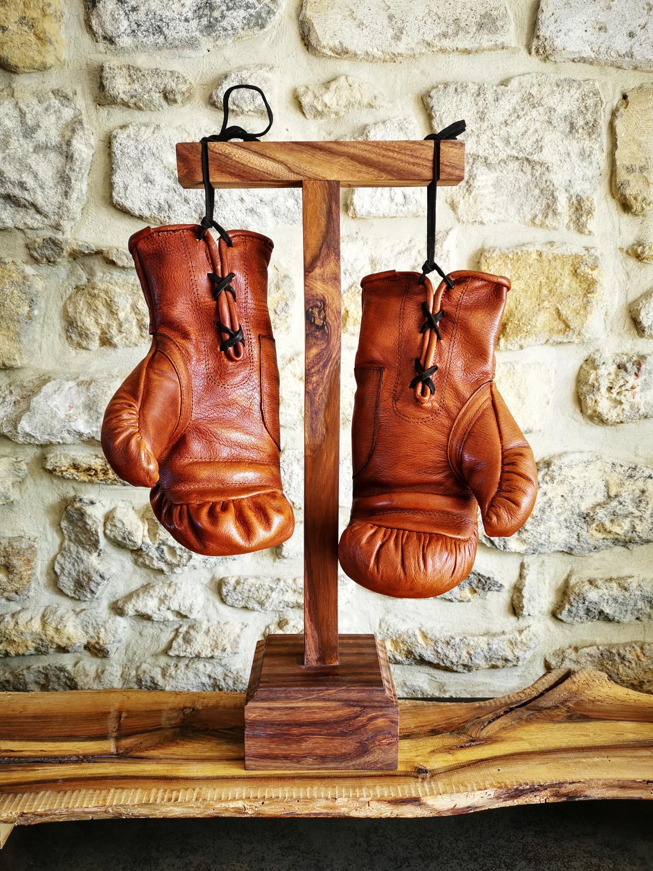 Vintage Leather Boxing Gloves - Affordable Antique Style with Handcrafted Patina Stand not included ...