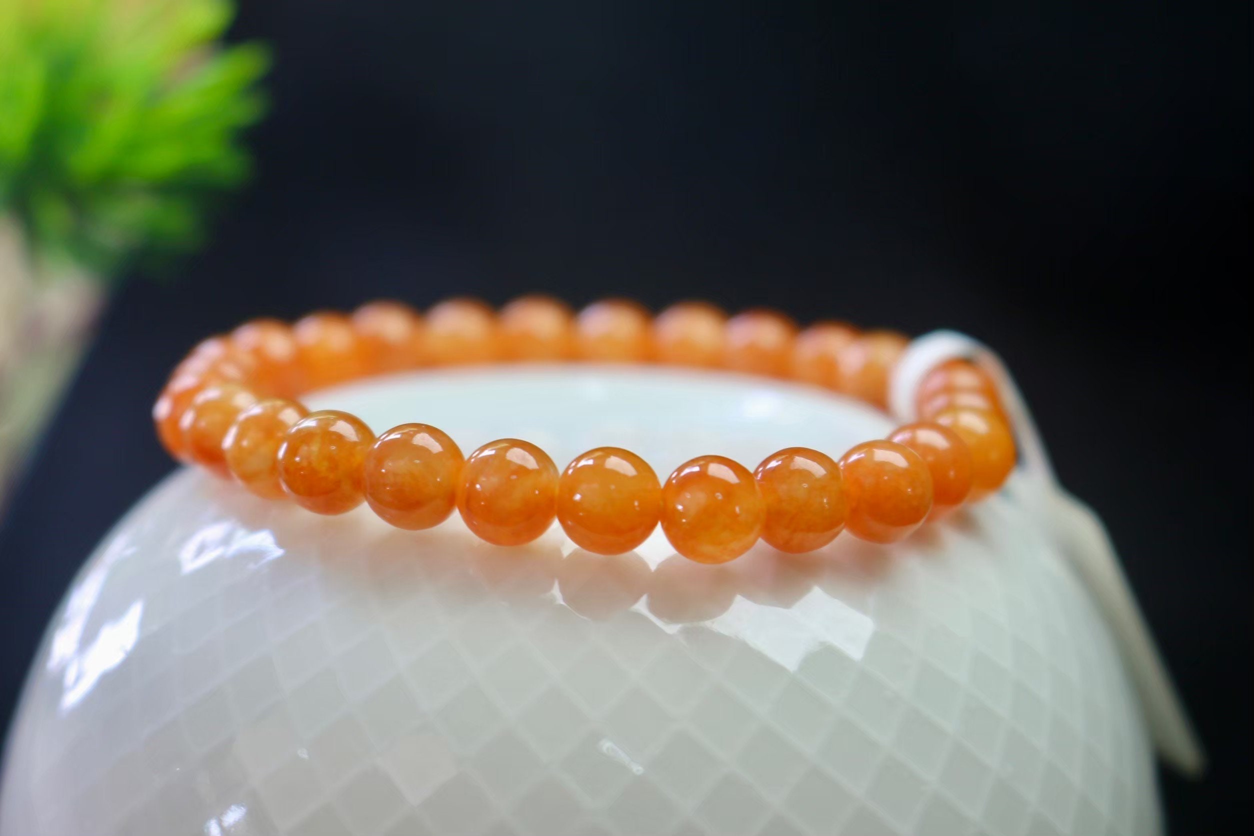 Orange Jade Beaded Bracelet - Honey Jade Bracelet - Natural Type A ...