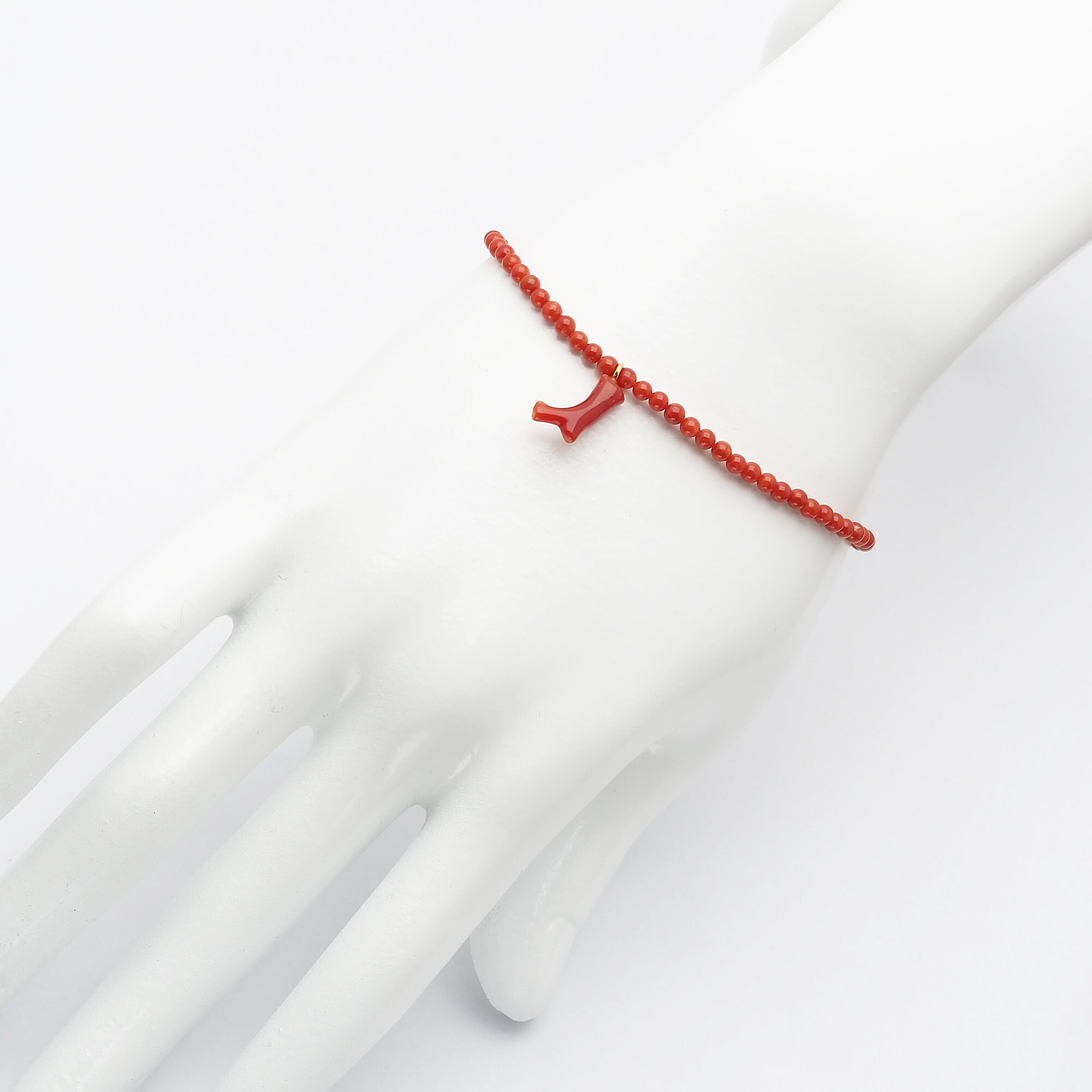 Undyed Natural Mediterranean Coral Charm Bracelet with Japanese Red...
