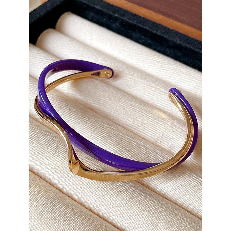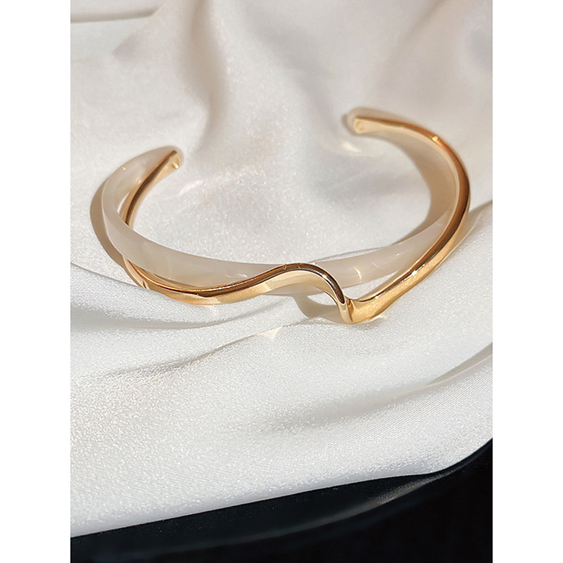 Women's Gold and Resin Bangle Bracelet, Elegant Wave Design Cuff Je...