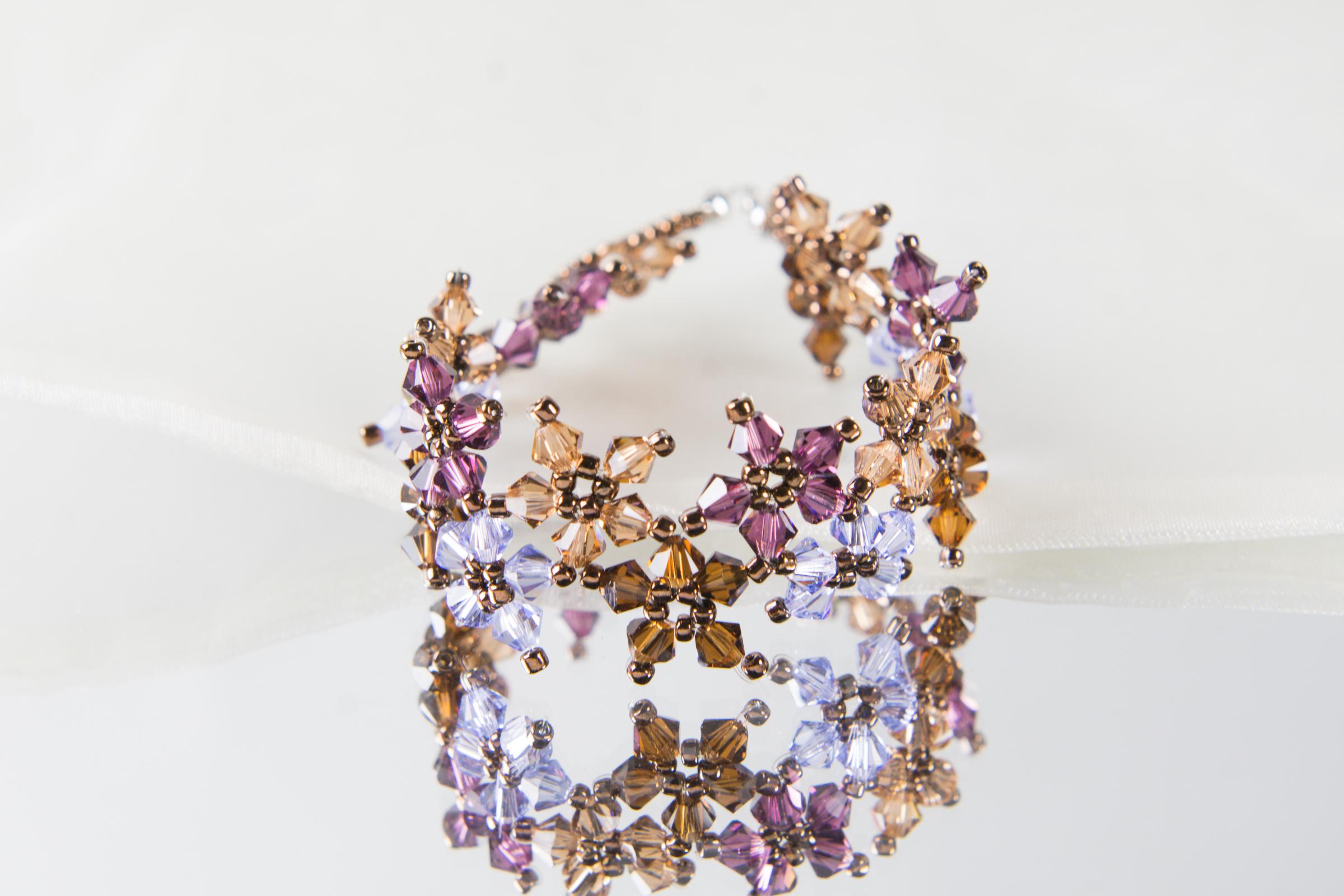 Crystal swarovski bracelet; Choco Purple multiflora bracelet, lengt...
