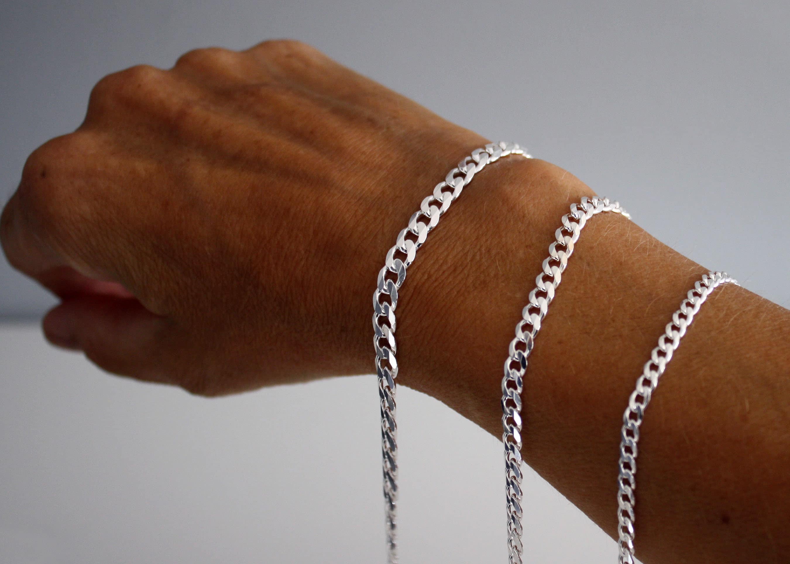 Silver Curb Chain Bracelet, 925 Solid Sterling Silver CURB Link Cha...