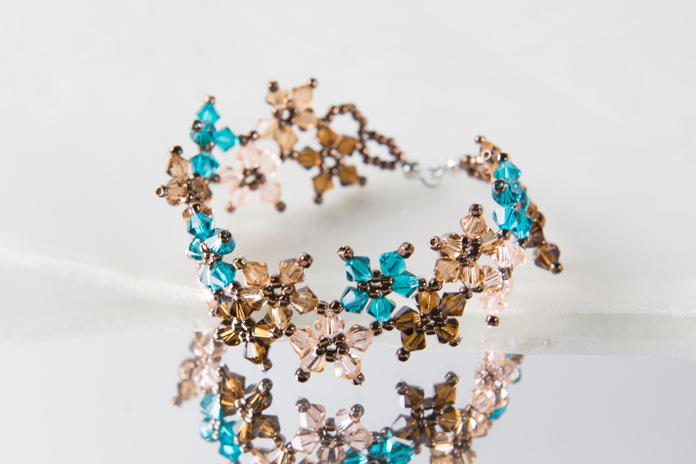 Crystal swarovski bracelet; Choco Teal multiflora bracelet, length ...