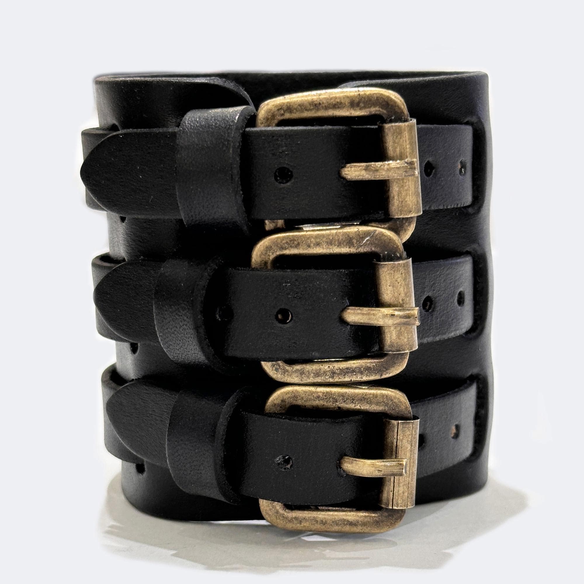 leather strength bracelet 1 strap/2 straps/3 straps black