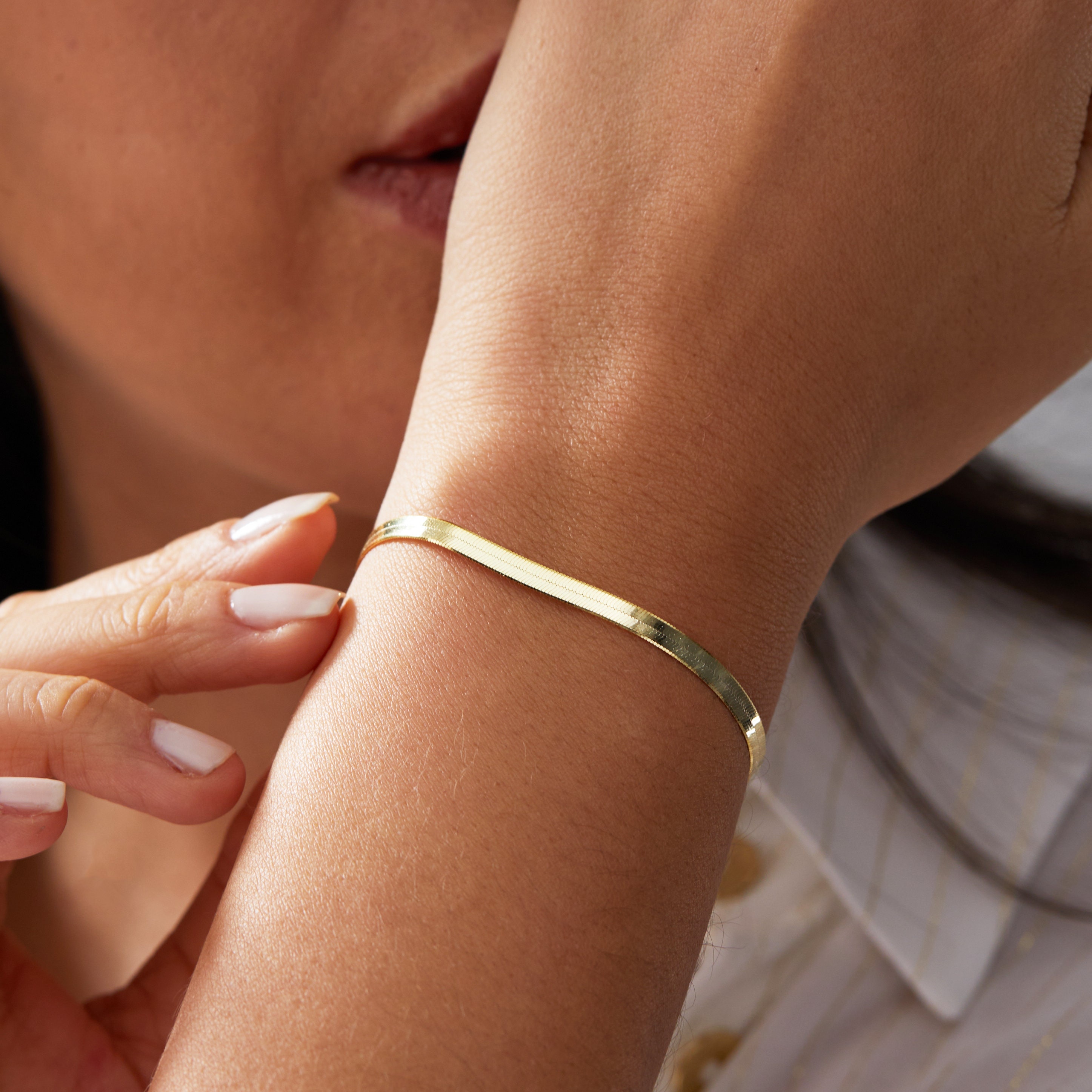 14k Gold Snake Chain Bracelet, Herringbone Chain Bracelet, Dainty S...