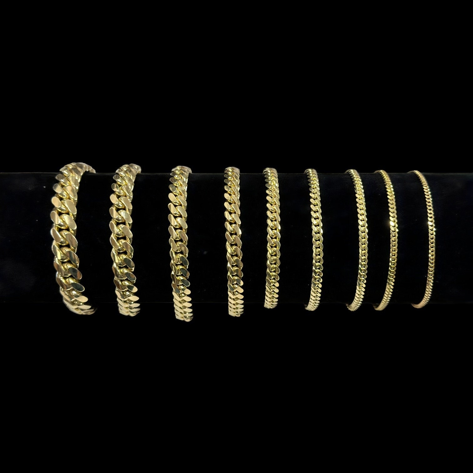 14K Gold Miami Curb Chain Bracelet, 14K Miami Cuban, 7-9-11 mm, 14K...