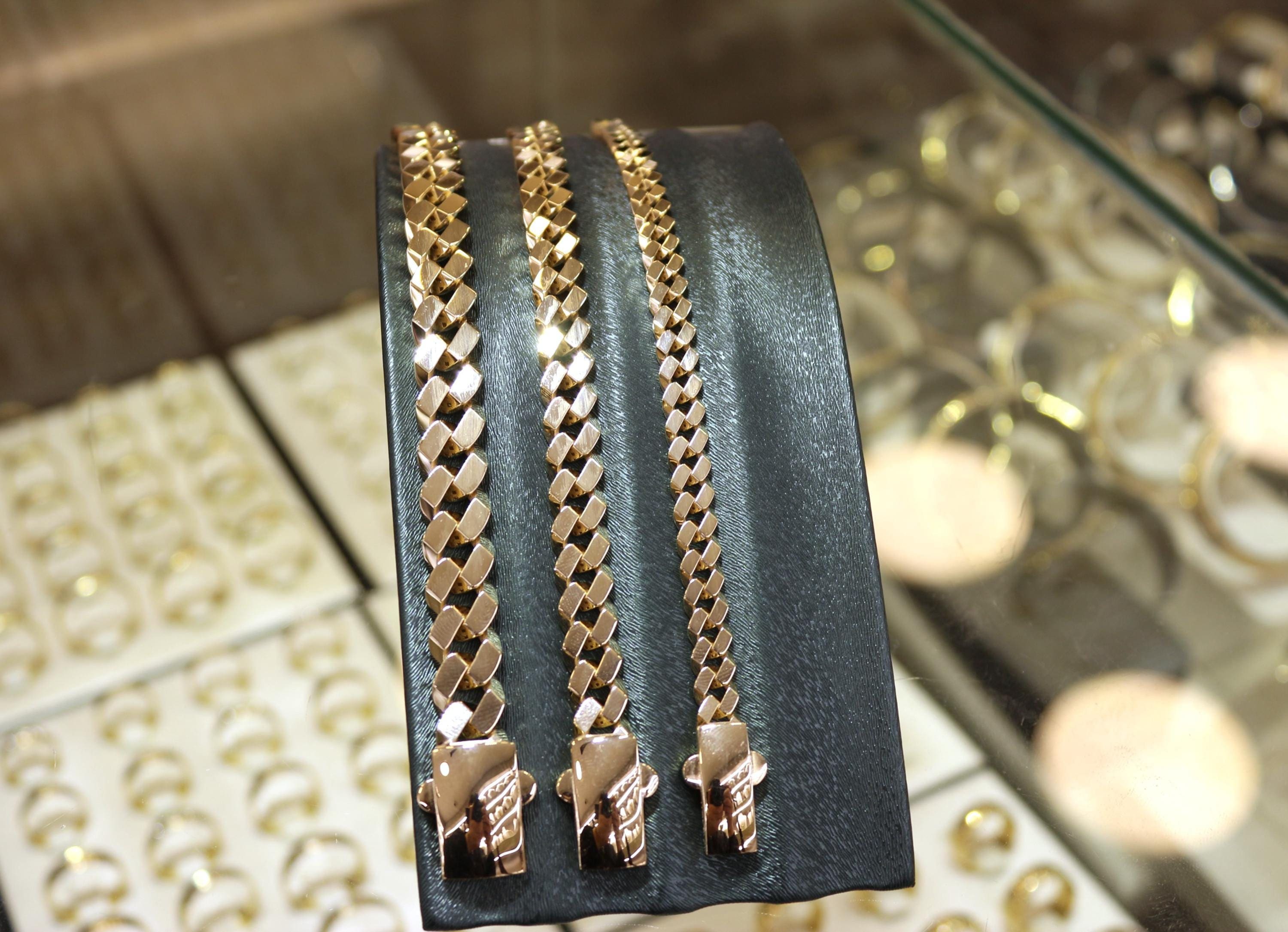 14K Gold Cuban Chain Bracelet, 14K Curb Chain Bracelet, 7-9-11-13 m...