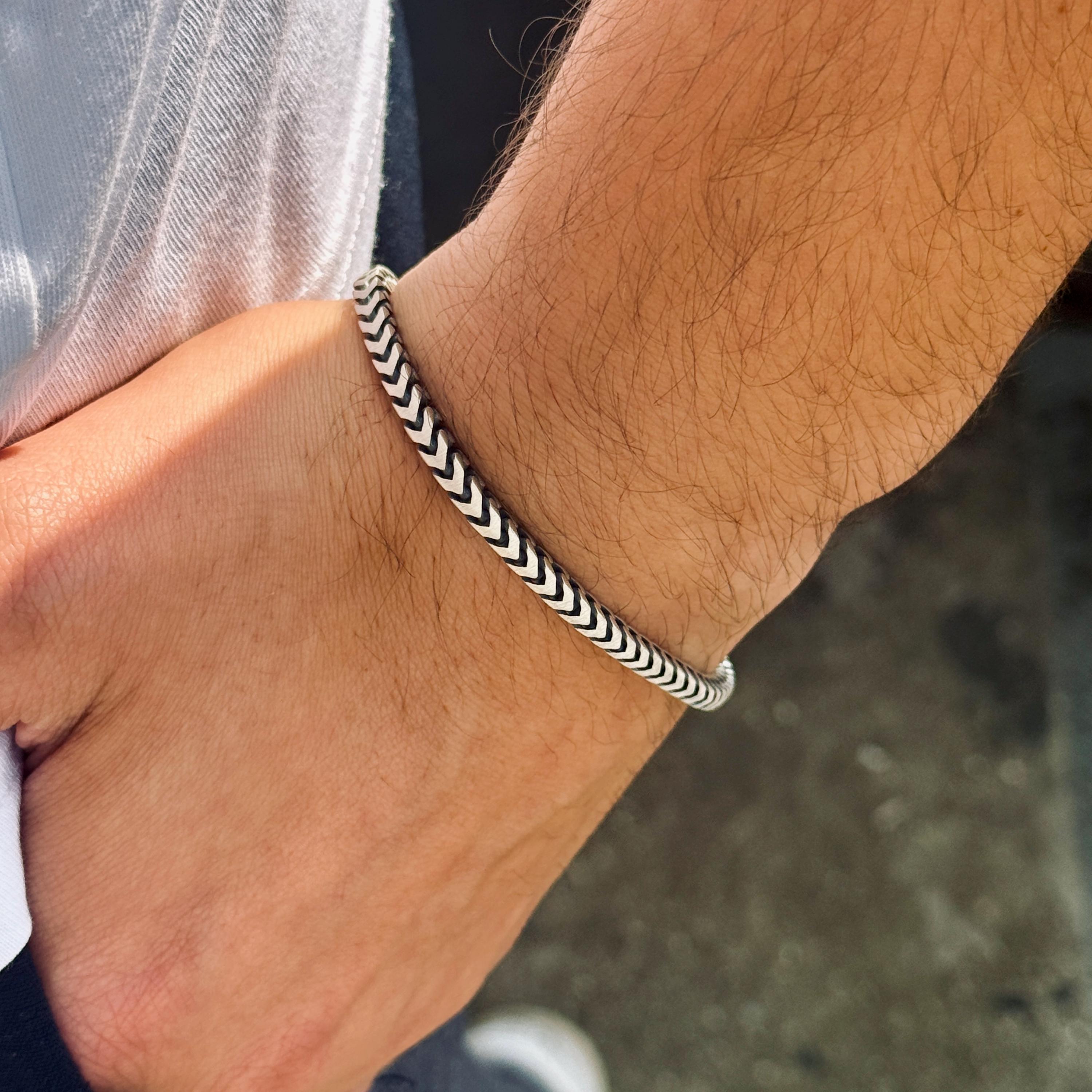 Men Silver Minimalist Chain Bracelet, Mens Chain Bracelet, Men's Waterproof Bracelet, Luxury Men Bra...