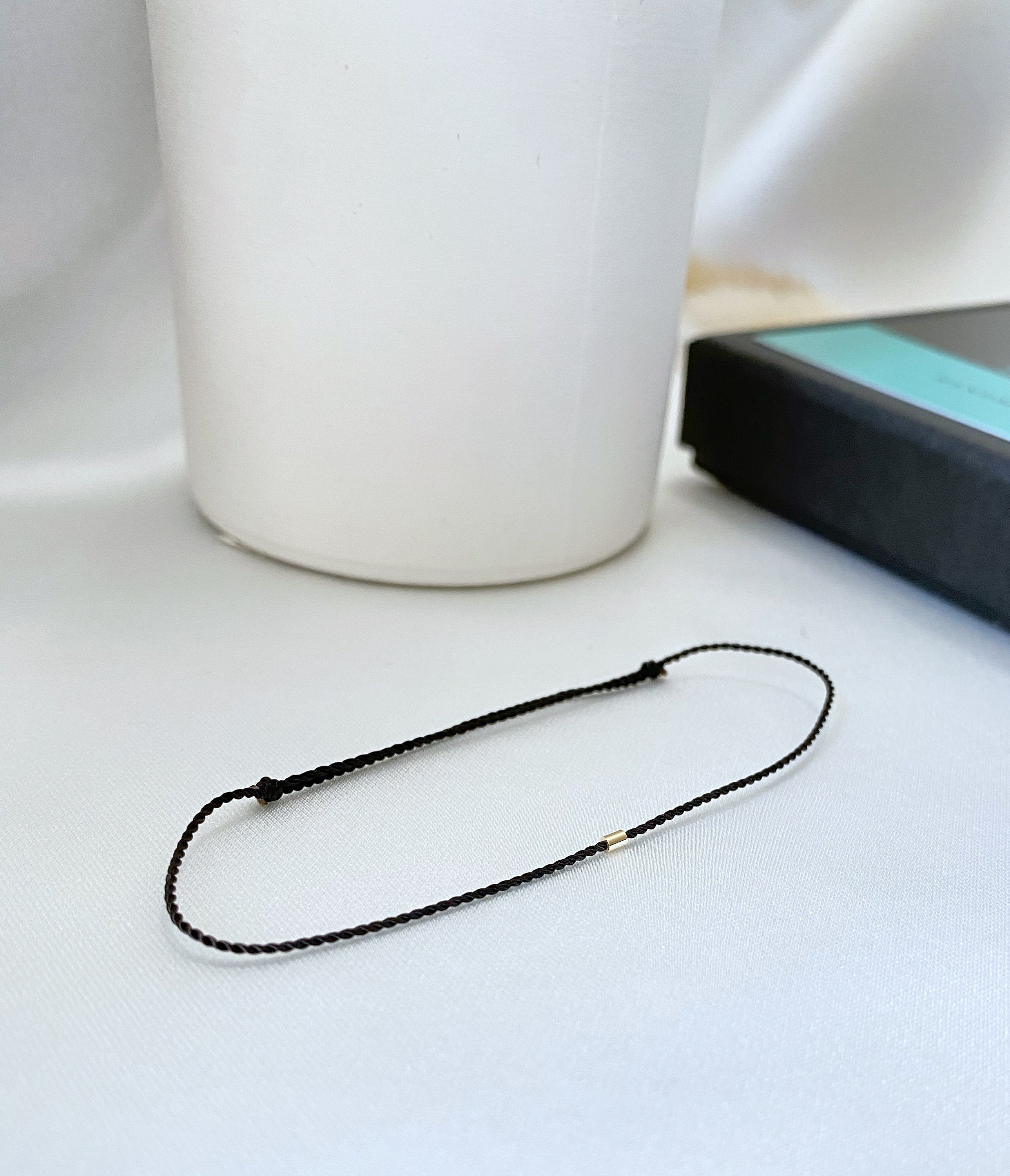 14k gold tube luxury string bracelet - silk cord red string bracele...