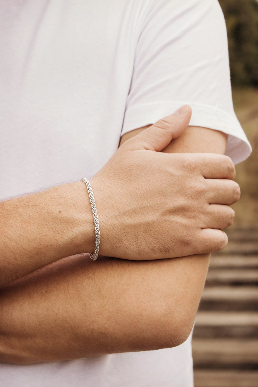 Thick Wheat Chain Bracelet, Silver Chain Bracelet, Solid Silver Cha...