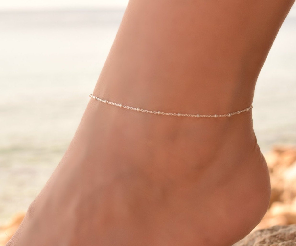 This silver anklet is so dainty! The anklet bracelet has a delicate solid sterling silver 925 chain....