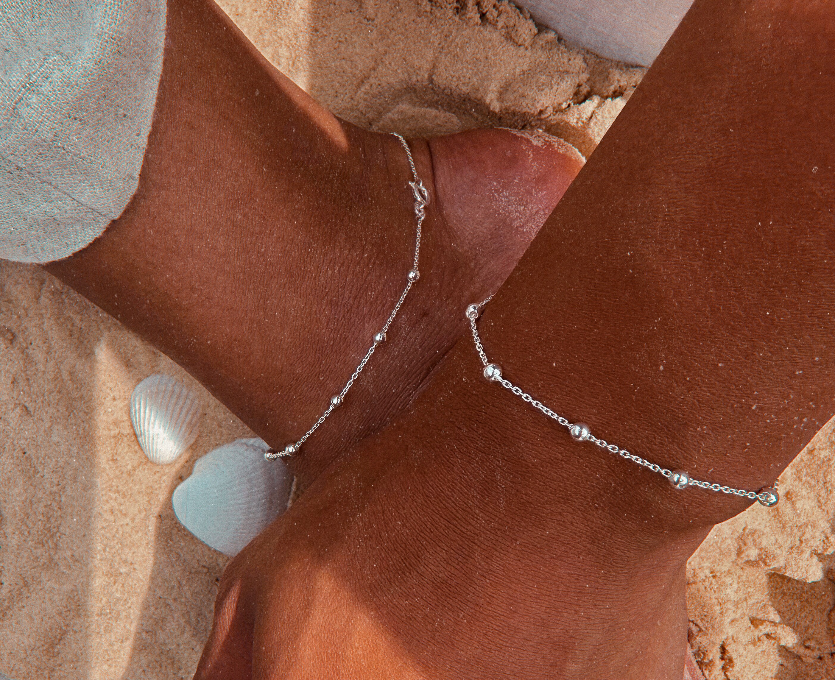 Sterling Silver Chunky Satellite Anklet, Sterling Silver Anklet, Sa...