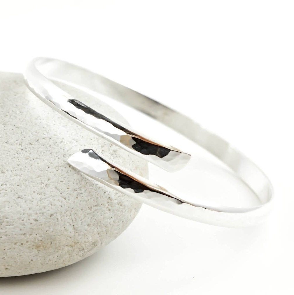 Sterling Silver Bracelet, Silver Bangle, Bypass Bracelet, Hammered,...