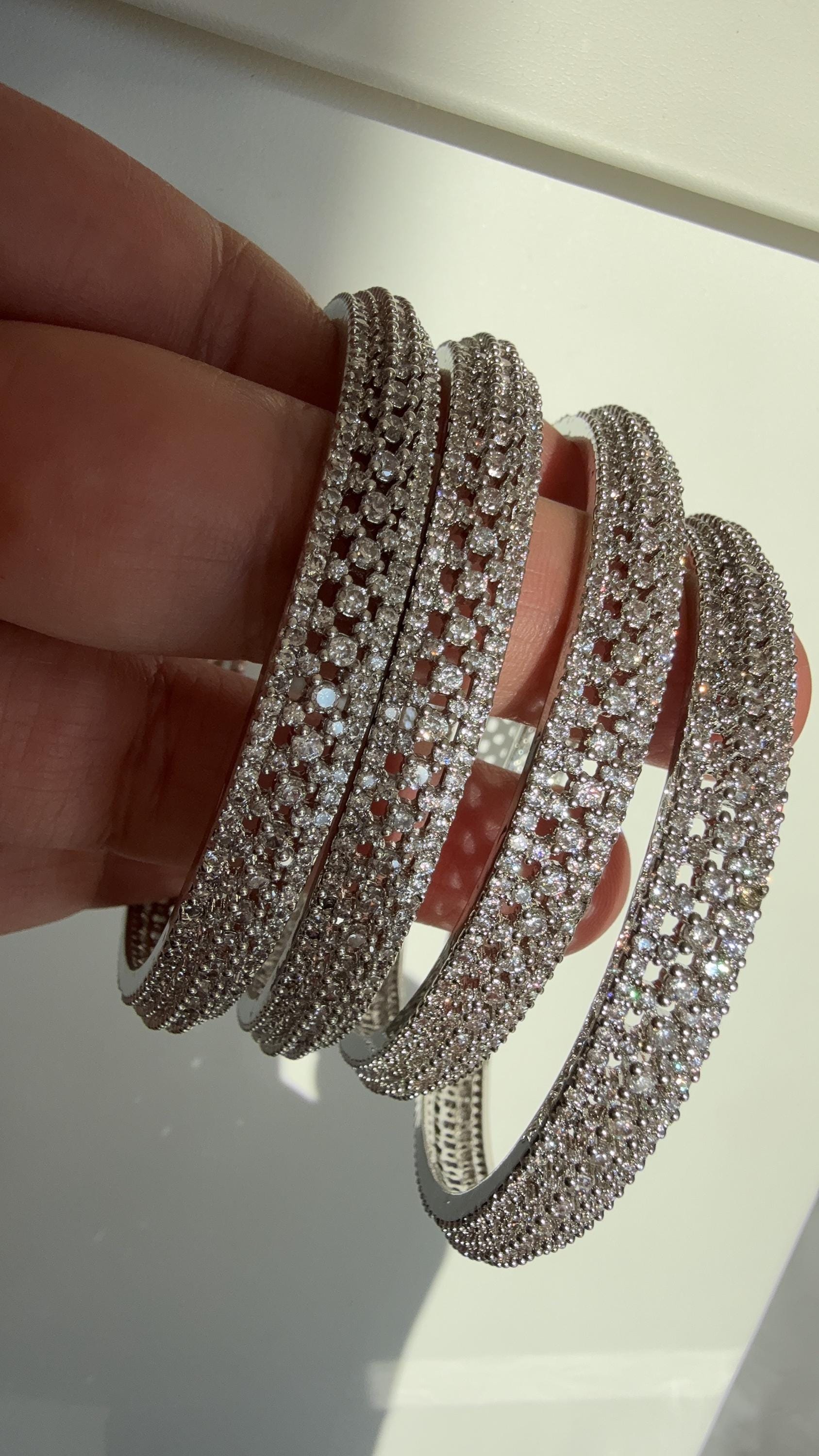 American diamond(AD) cubic zirconia bangles set of 4/Silver American Diamond AD Bangles Set/Silver A...