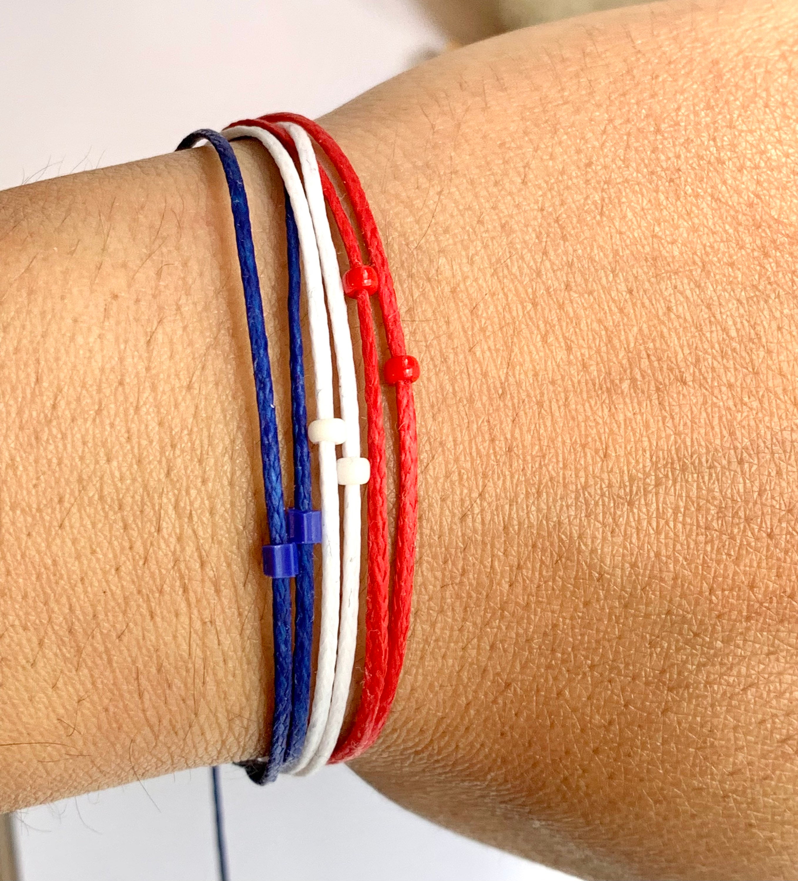 Handmade bracelet-red, white and blue colours -Handmade jewelery -waxed cotton thread-1.2mm -Miyuki ...