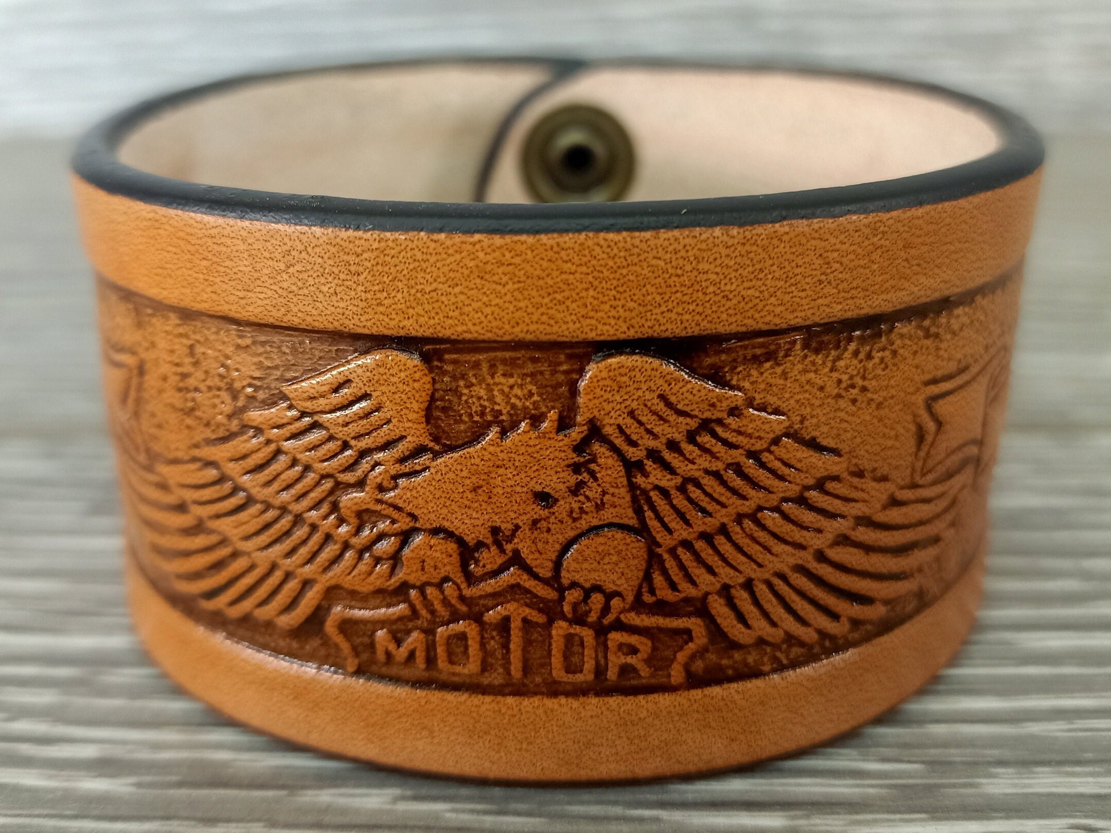 Leather Cuff Bracelet Handmade Jewelry, Country Music Eagle Brown L...