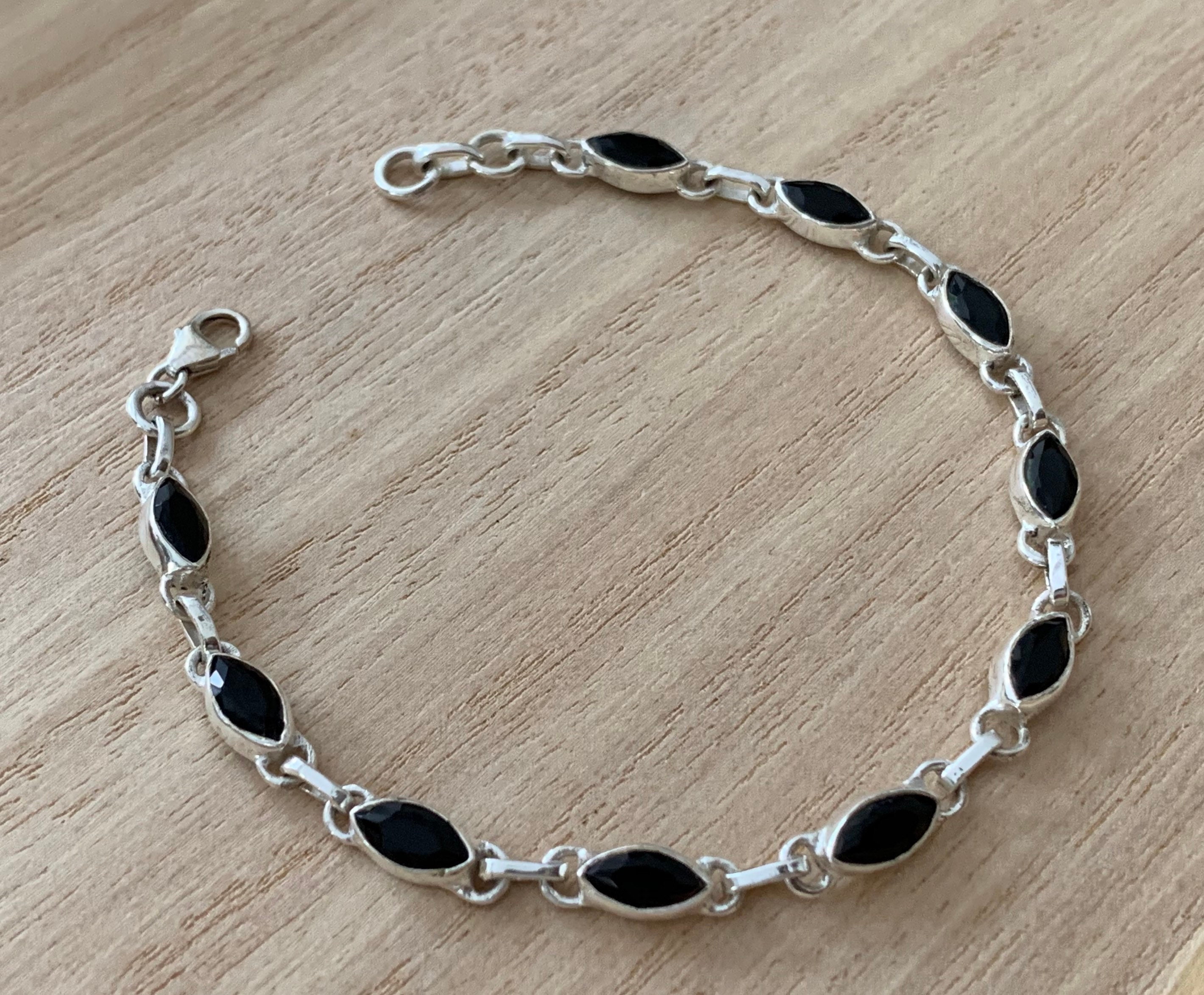 Lovely black onyx and sterling silver bracelet. The bracelet has 8 individual black onyx in an oval ...