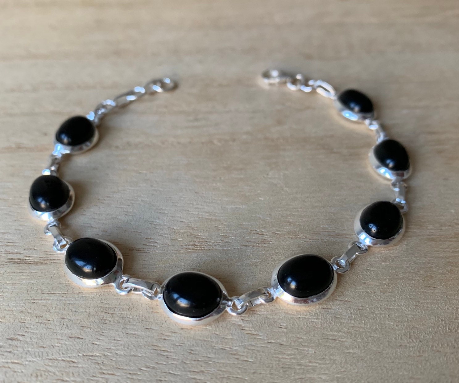 Black onyx sterling silver bracelet, Black onyx bracelet, Chain bla...