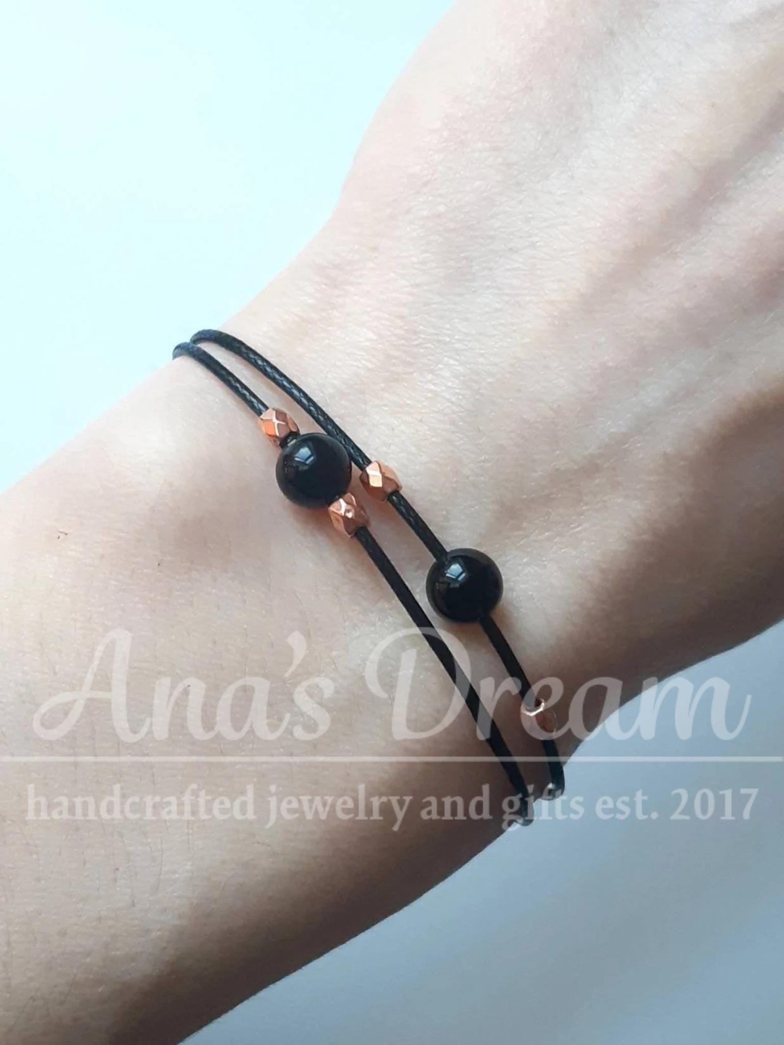 Dainty Black Onyx bracelet Black Onyx cord bracelet Adjustable stri...