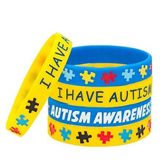 Debossed Ink Filled Autism Awareness Silicone Bracelets with Inspir...