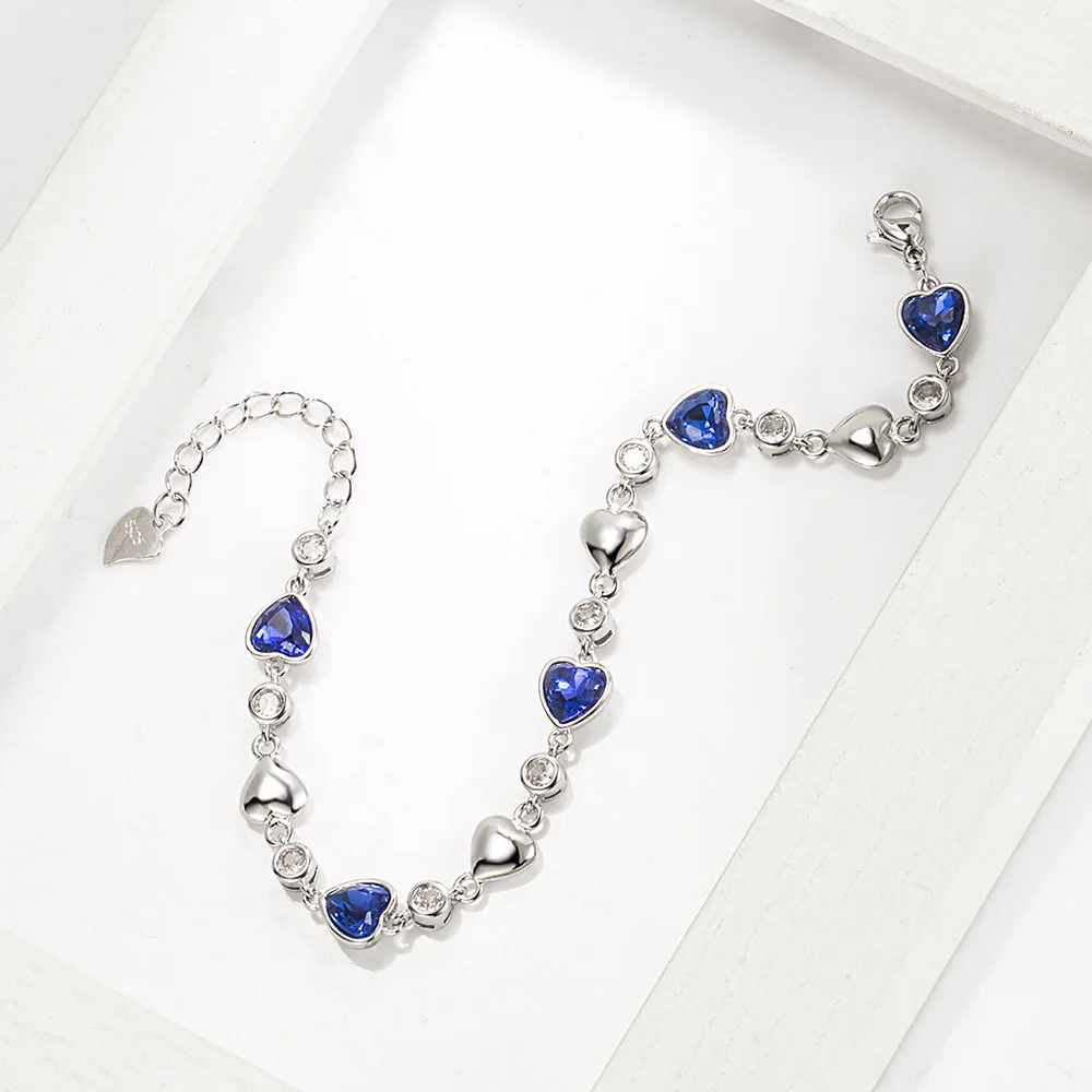 925 Sterling Silver Blue Zircon Heart Love Bracelets For Women Wedd...