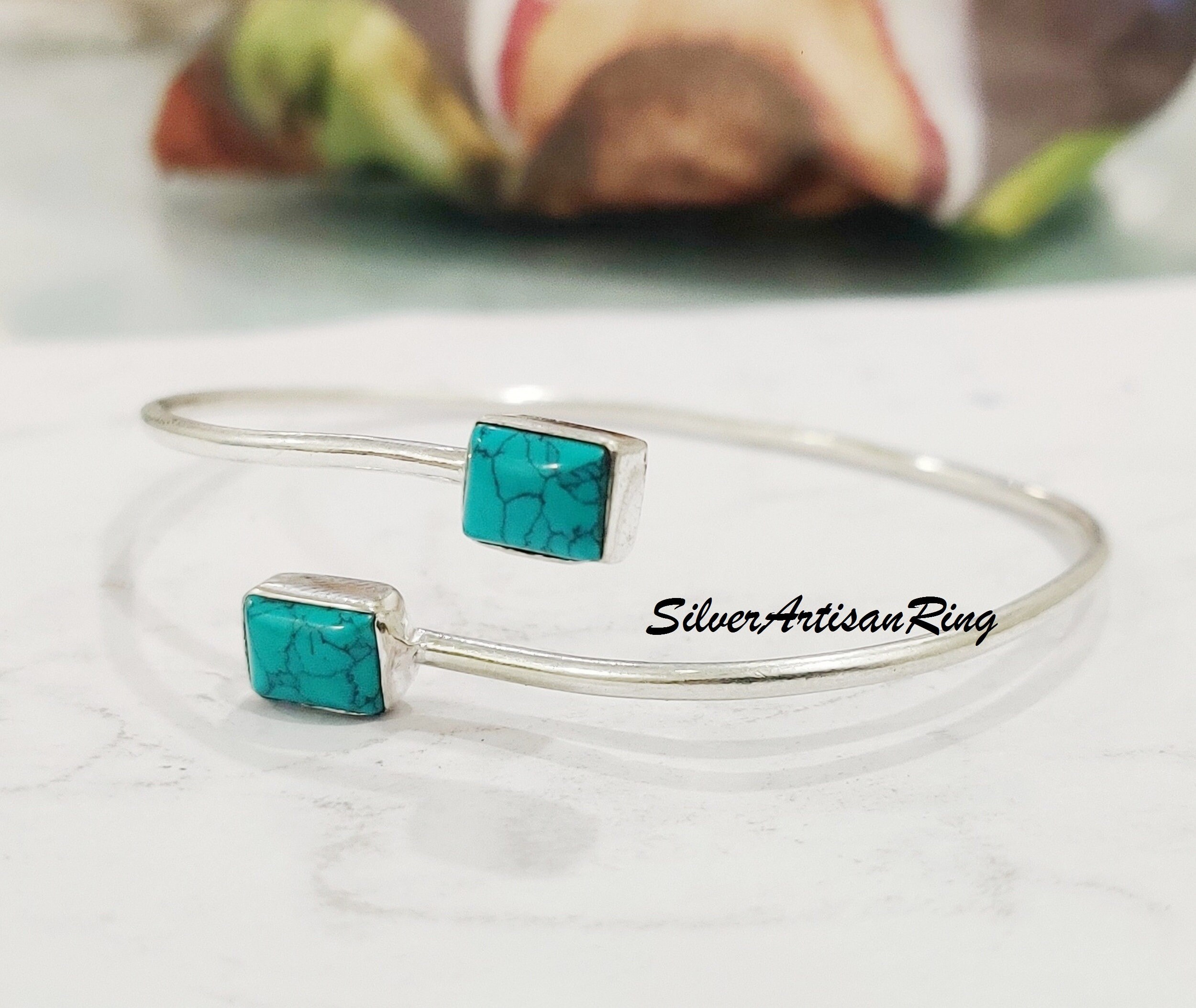 Turquoise Bangle,925 Silver Bangle, Gemstone Bangle, Amezing Bangle...