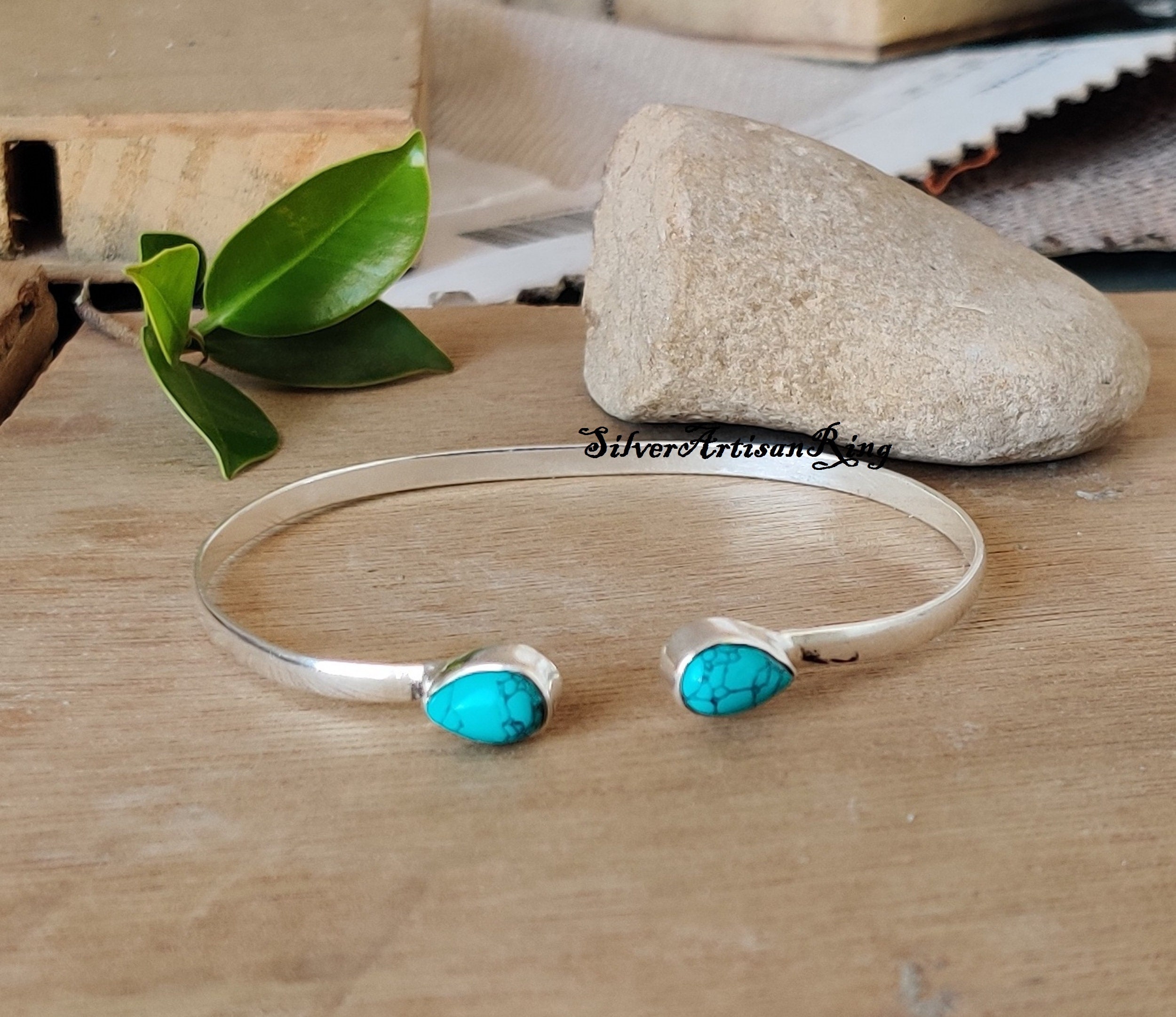 Turquoise Bangle,925 Silver Bangle, Two Gemstone Bangle, Amazing Ba...