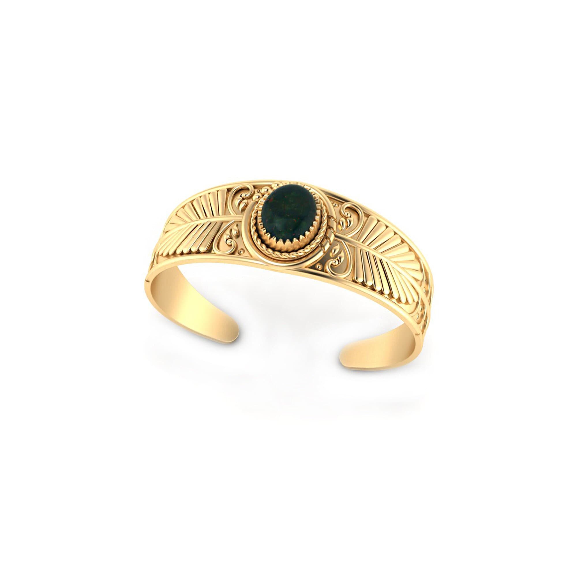 Bloodstone Leaf Patterned Bracelet, Wide Cuff Bracelet, Adjustable ...