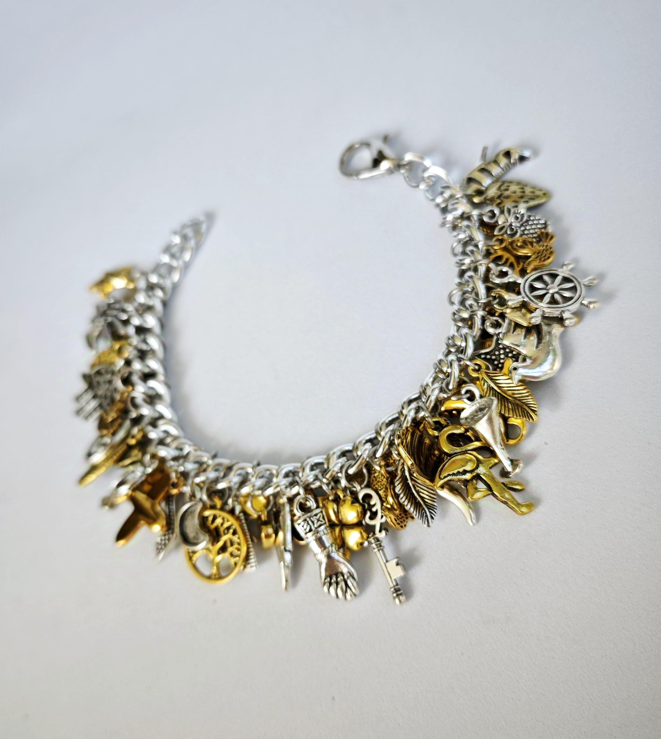 charm bracelet, charm bracelet charms, charm bangle, silver and gol...