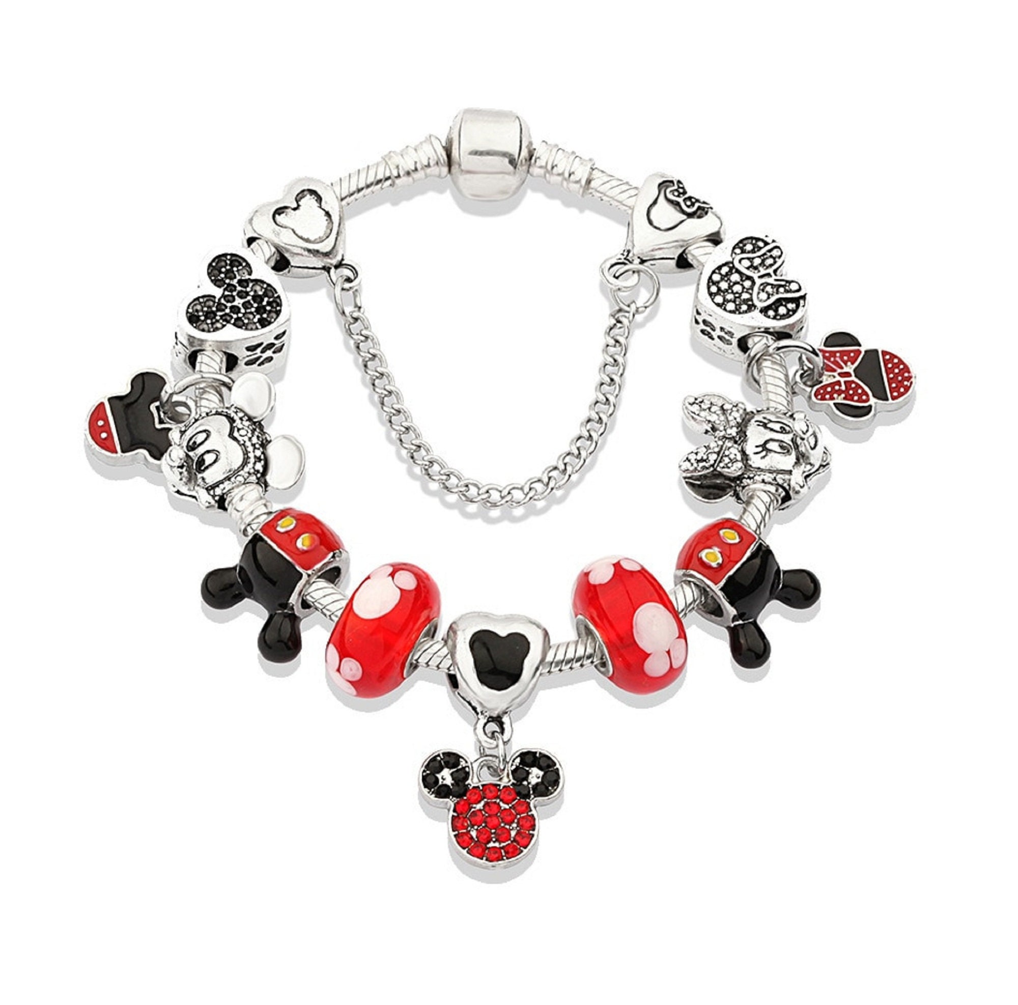 New 2022 Pandora Style Disney Mickey Minnie Mouse Charm Bracelet, Cartoon Mickey Minnie Beads Charm ...