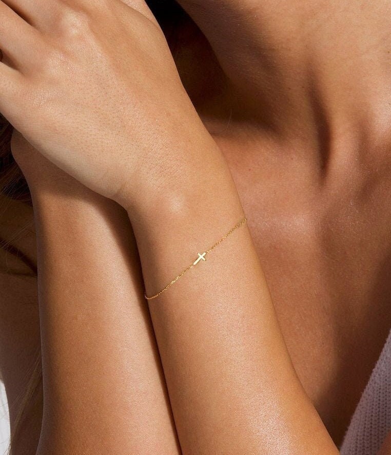 Gold Cross Bracelet, Cross Jewelry, Sterling Silver Cross Bracelet,...