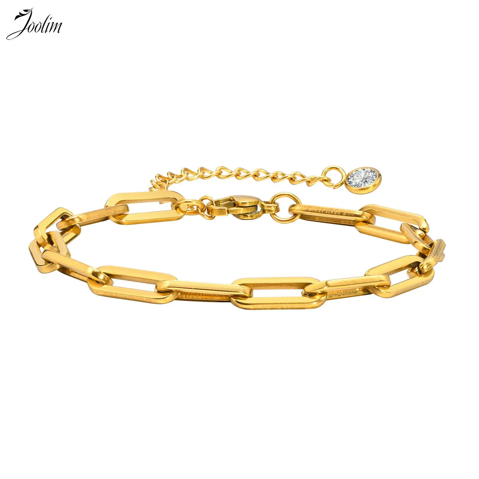 Joolim Jewelry High End PVD Wholesale No Fade Simple Retro Geometric Pin Link Chain Zirconia Stainle...