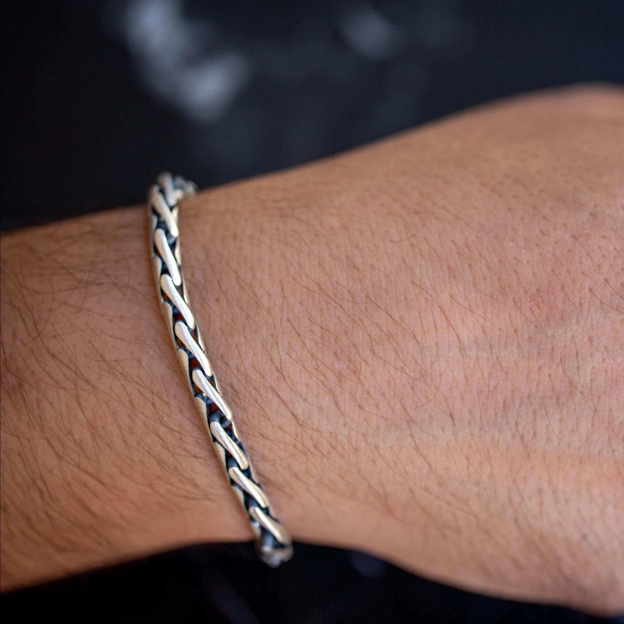 Men Silver Chain Bracelet, Braided Solid Silver Chain, Men Chain Link Bracelet, Bracelets For Men, 9...
