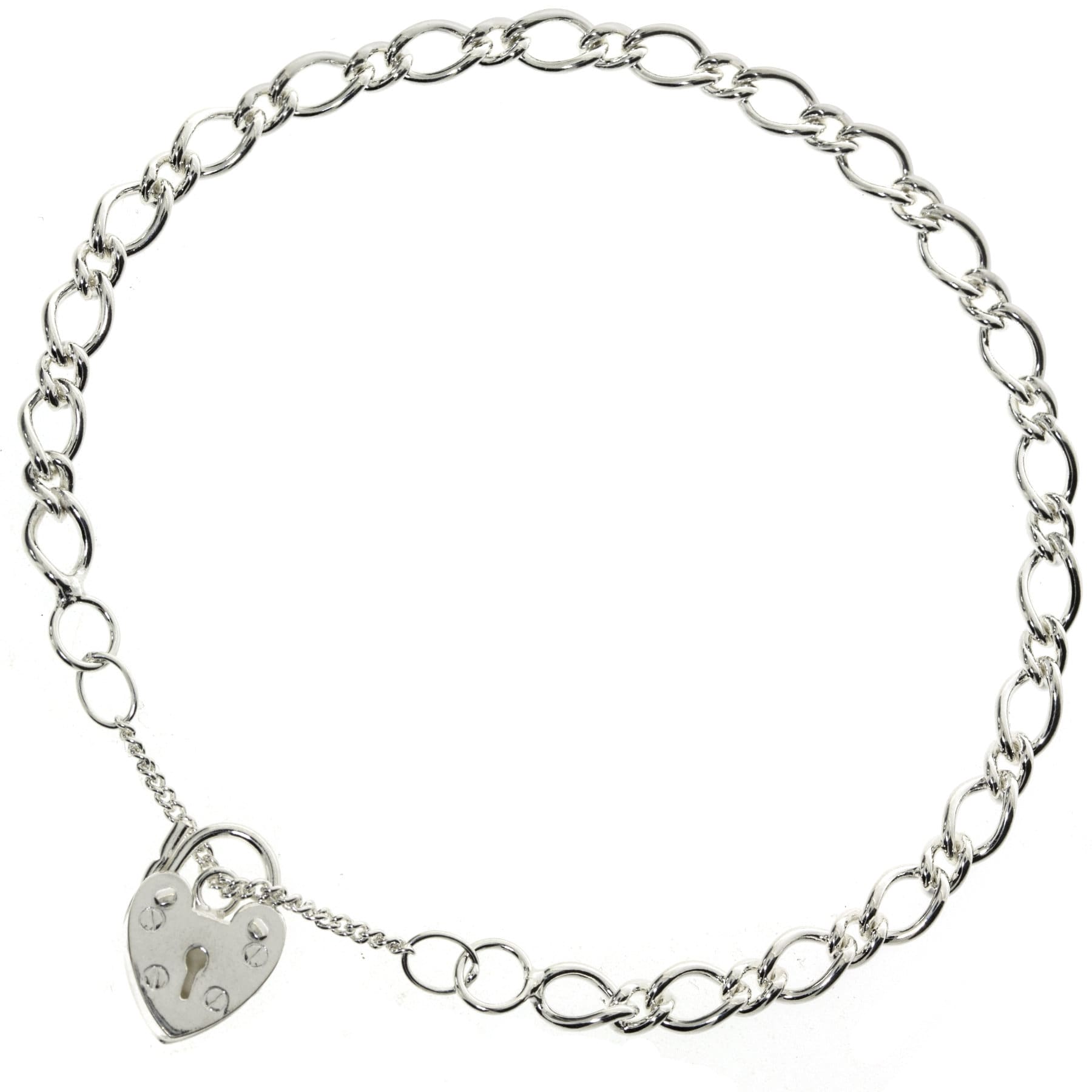 925 Sterling Silver Charm Bracelet Ladies Childs Flat Round Figaro ...