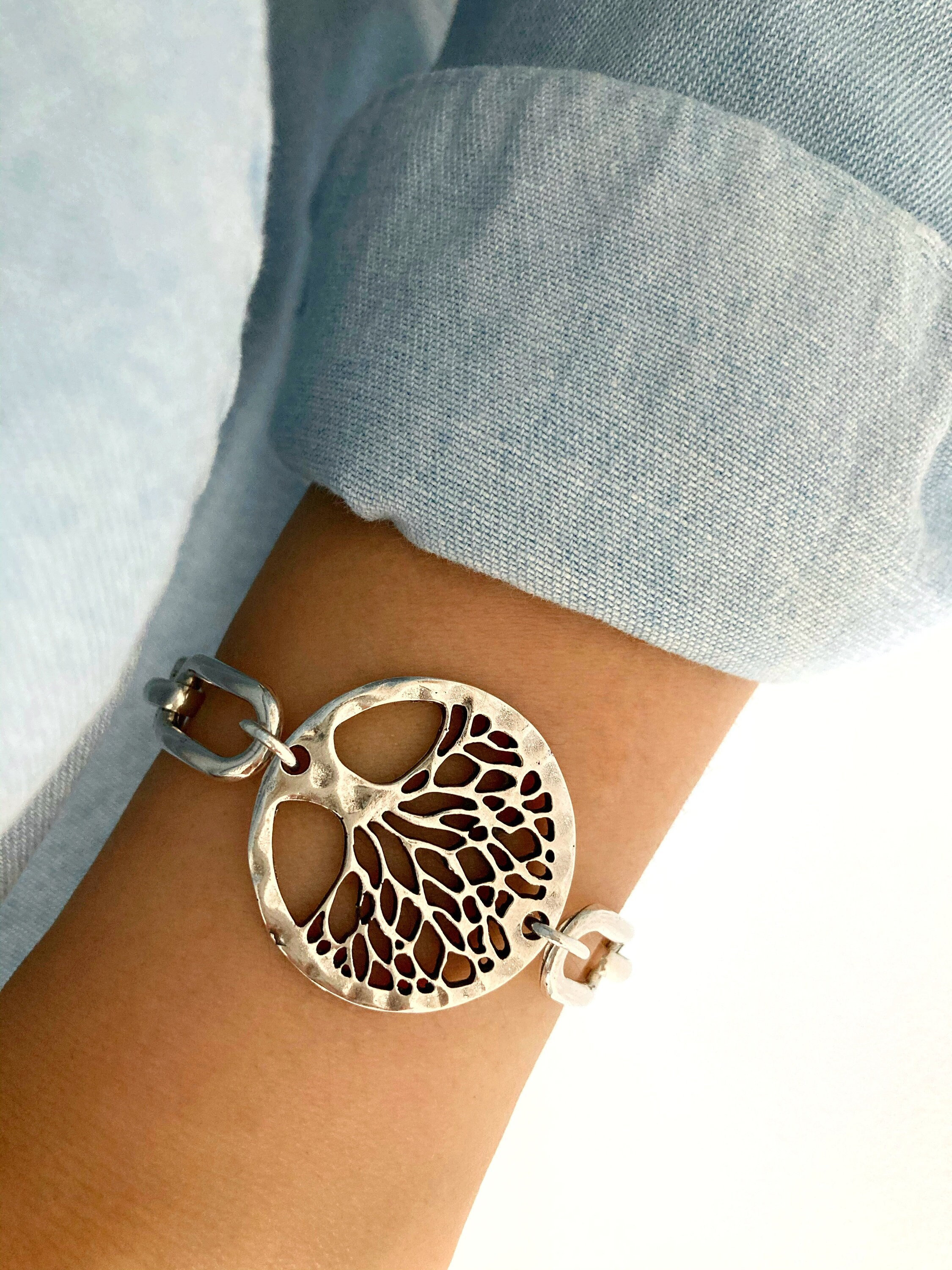 Silver Bracelet, Life tree Silver Bracelet, Large Link Bracelet, Si...