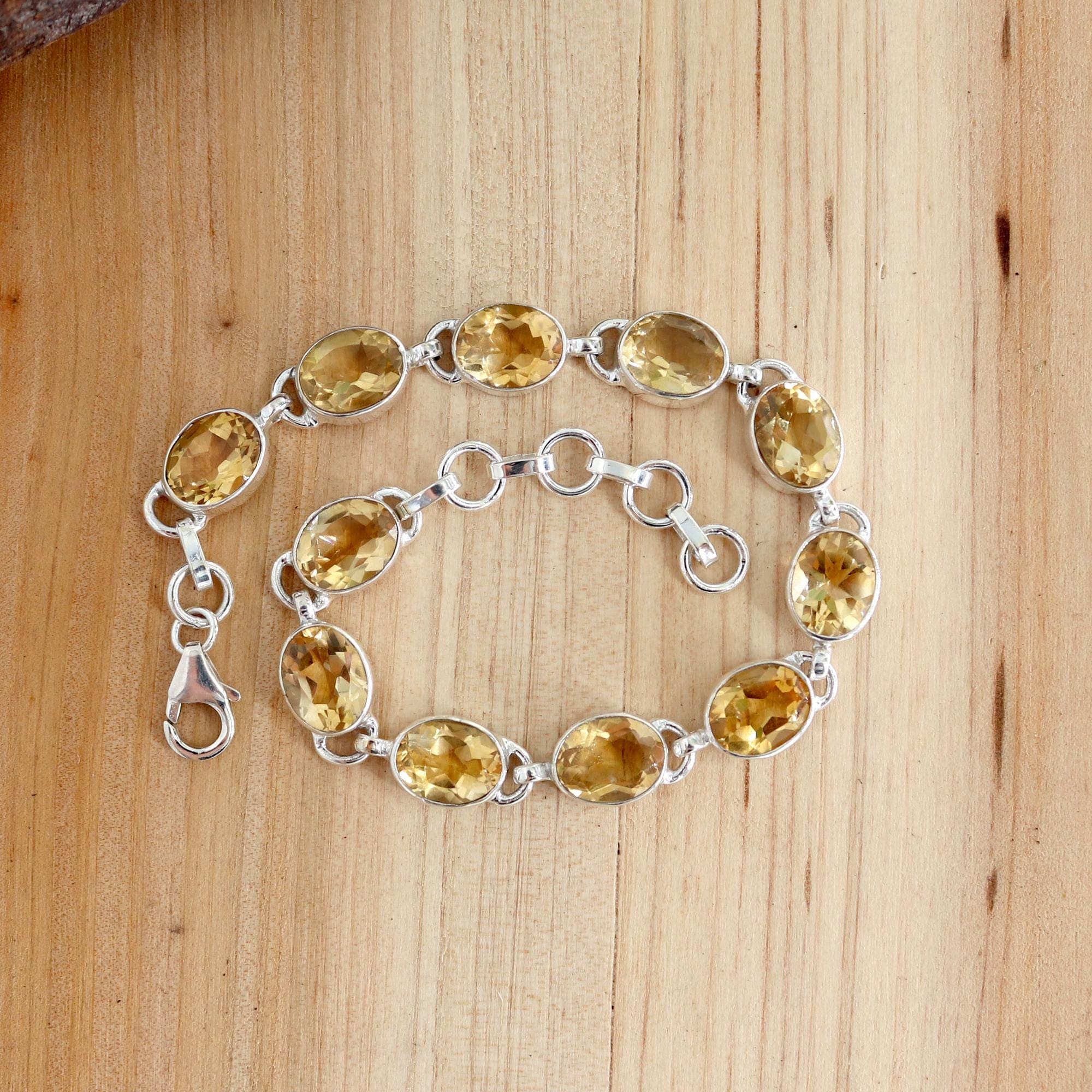 Faceted citrine sterling silver bracelet, Citrine bracelet, Chain C...