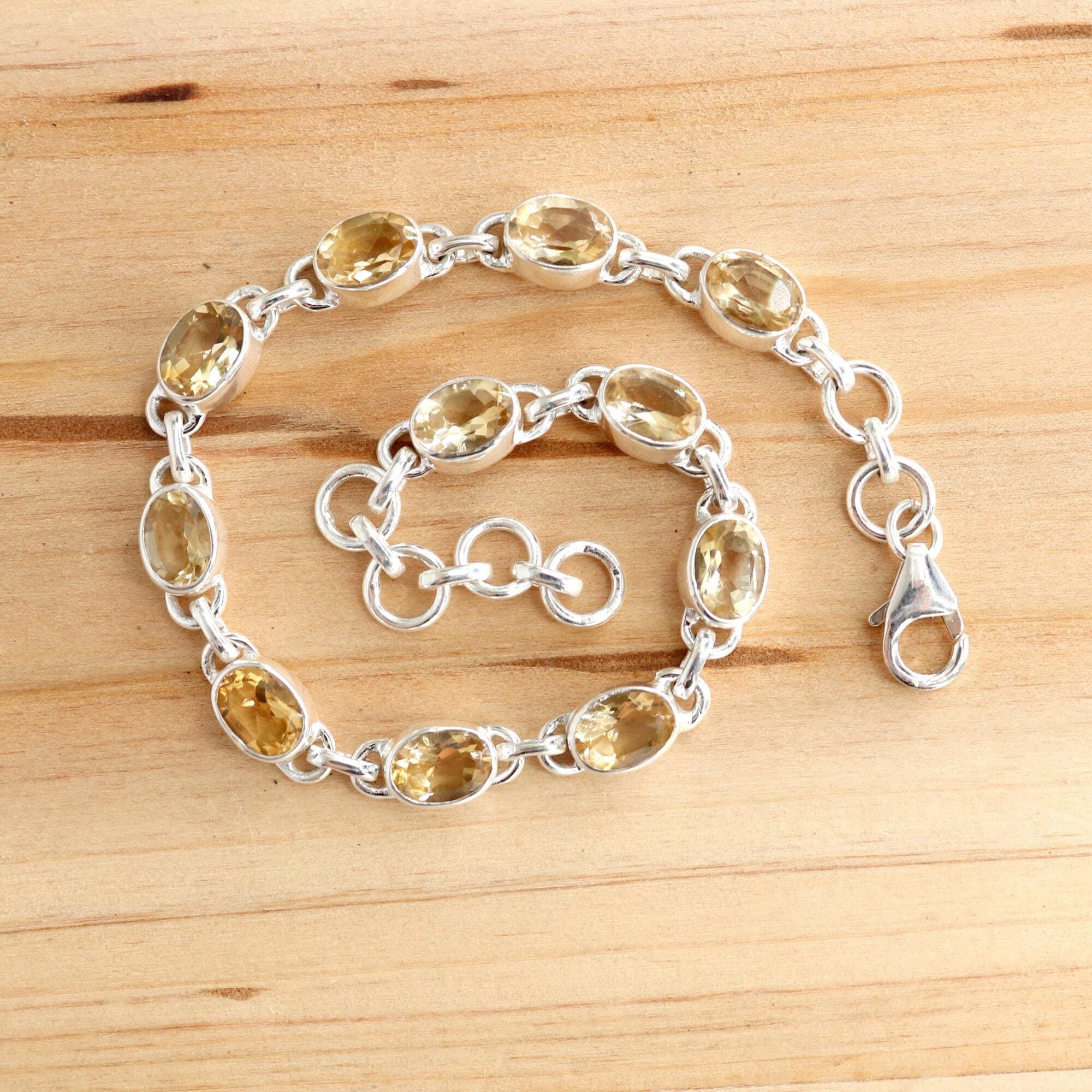 Citrine Bracelet, Sterling Silver Citrine Bracelet, Dainty Wristband Citrine Bracelet, Oval Cut Ston...