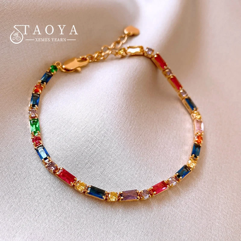 Dopamine Colored Zircon Design Gold Color Chain Bracelet 2024 Fashi...