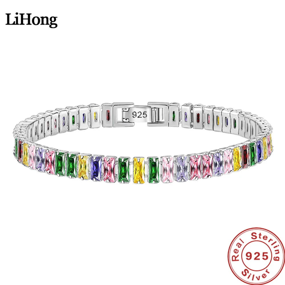 LiHong 925 Sterling Silver Bracelet Light Luxury Colored Zirconia Hand Jewelry Bracelet Women Charm ...
