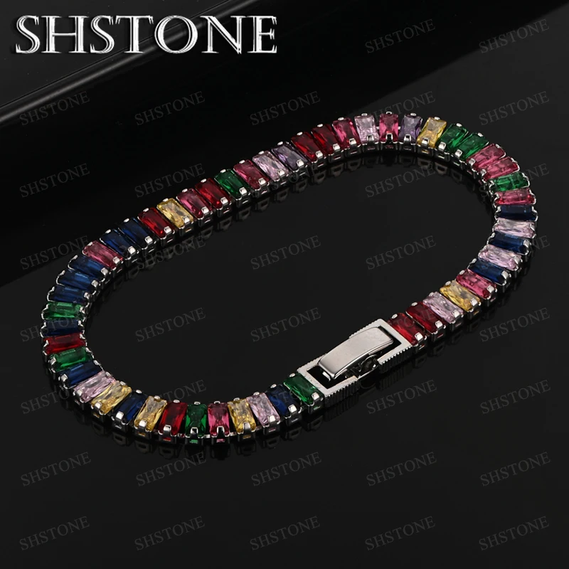 Fashion Classics 925 Sterling Silver Bracelet Luxury Colored Zircon Hand Chain Lady Charm Jewelry Gi...