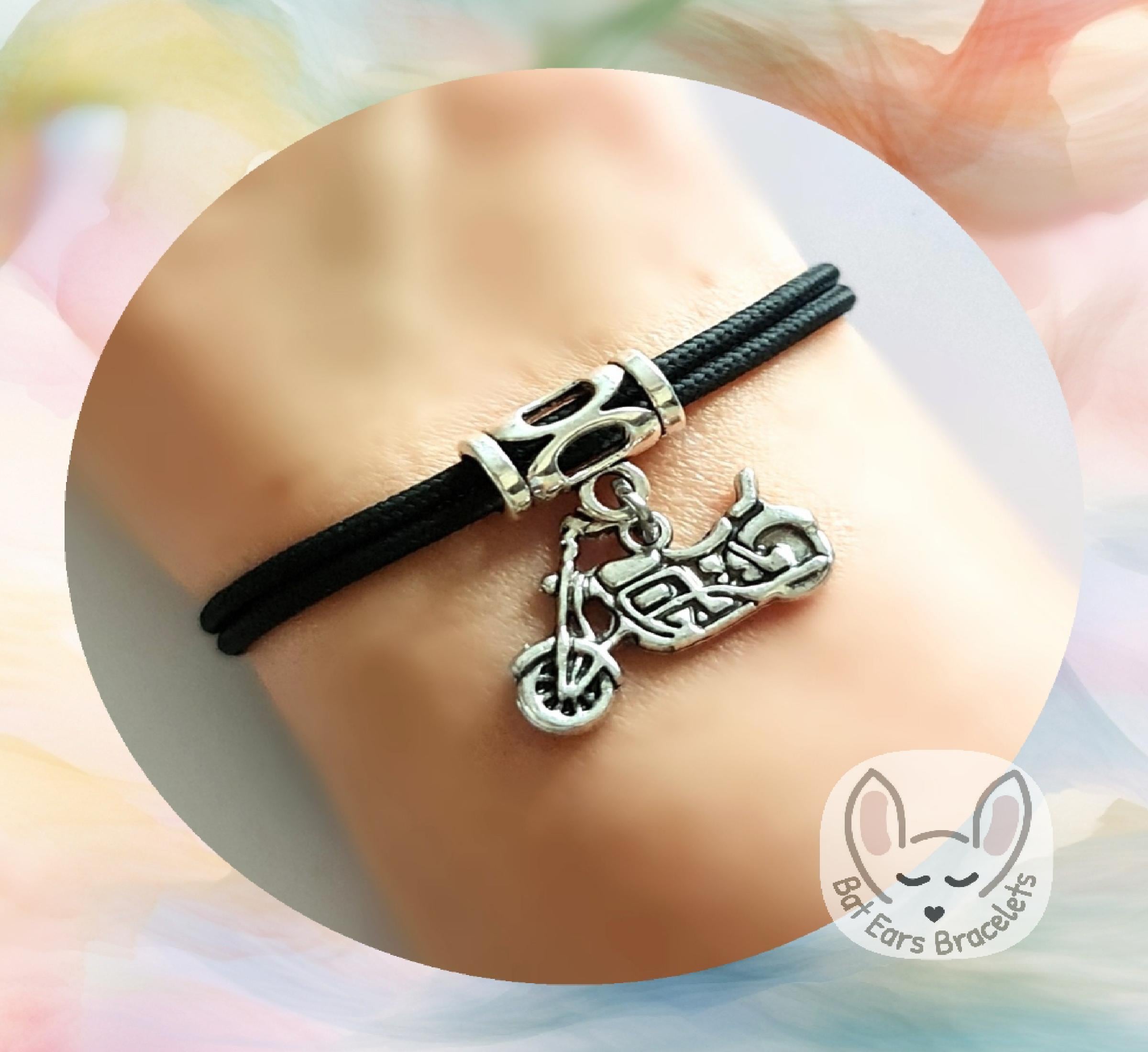 30 CORD COLOURS Motorbike Charm Bracelet Motorcycle Charm Biker Gif...