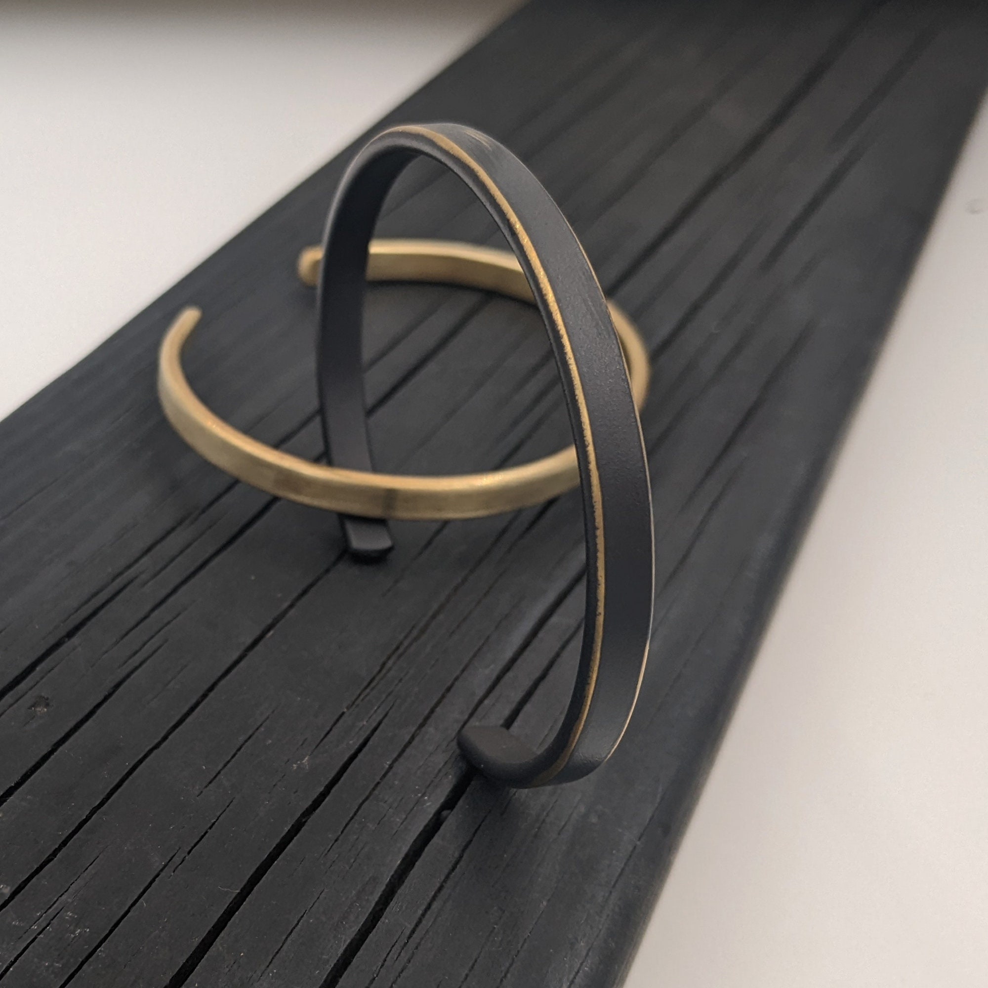 Matte Black Brass cuff. brushed on the edges, making it black and Gold. Cuff Measurement : Width : a...