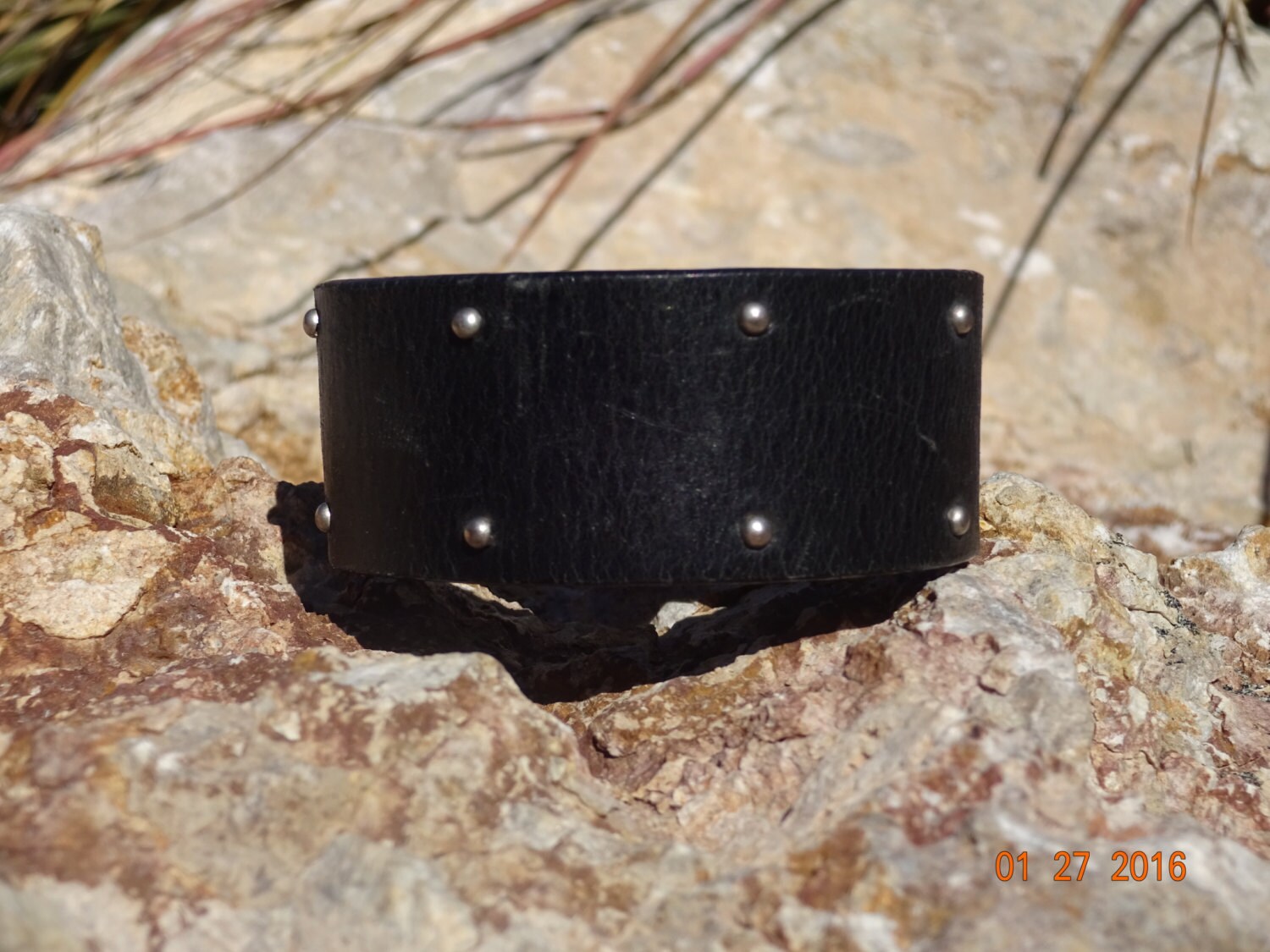 studded leather cuff bracelet/upcycled leather cuff/mens womans cuf...