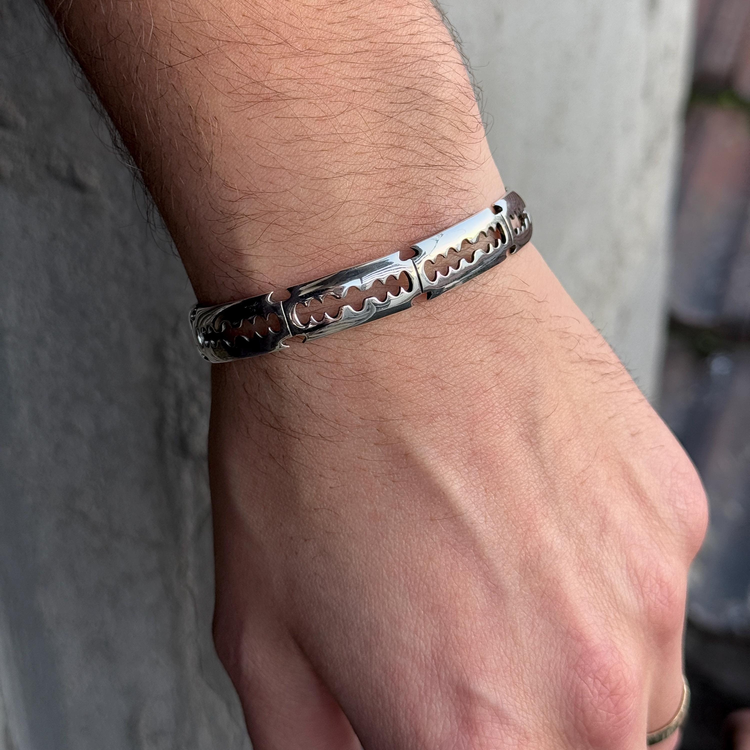 Silver Cuff Bracelet, Razor Cuff Bracelet, Adjustable Men Cuff Bracelet, Handmade Men Silver Cuff, S...