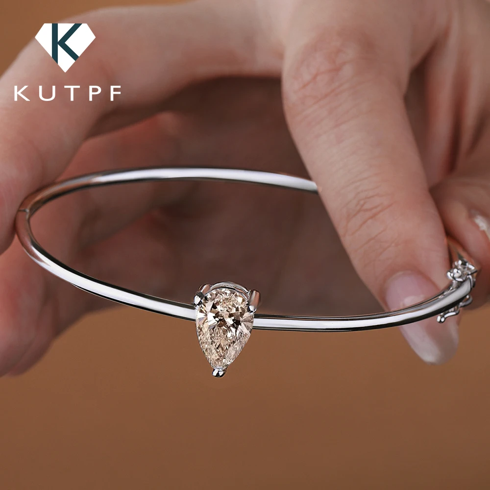 1CT Solitaire Waterdrop Moissanite Bangles for Women 925 Sterling Silver Pear Cut Diamond Bracelet w...