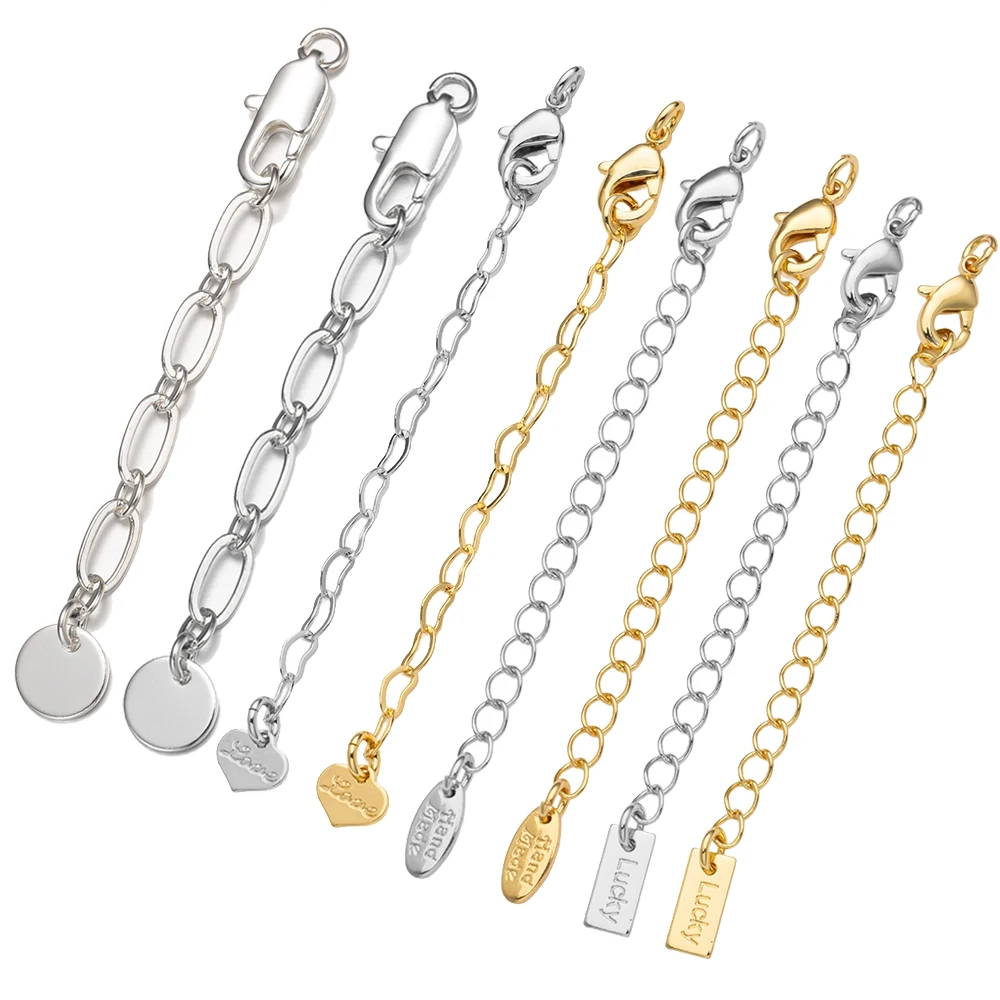 2/4/6pcs 18k Gold Plated Brass End Chain Extension with Heart Love ...
