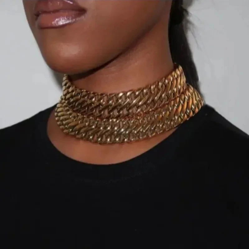 23mm Gold Color 316L Stainless Steel Bigger Bracelet for Men Rock Women‘s Choker Cuban Miami L...