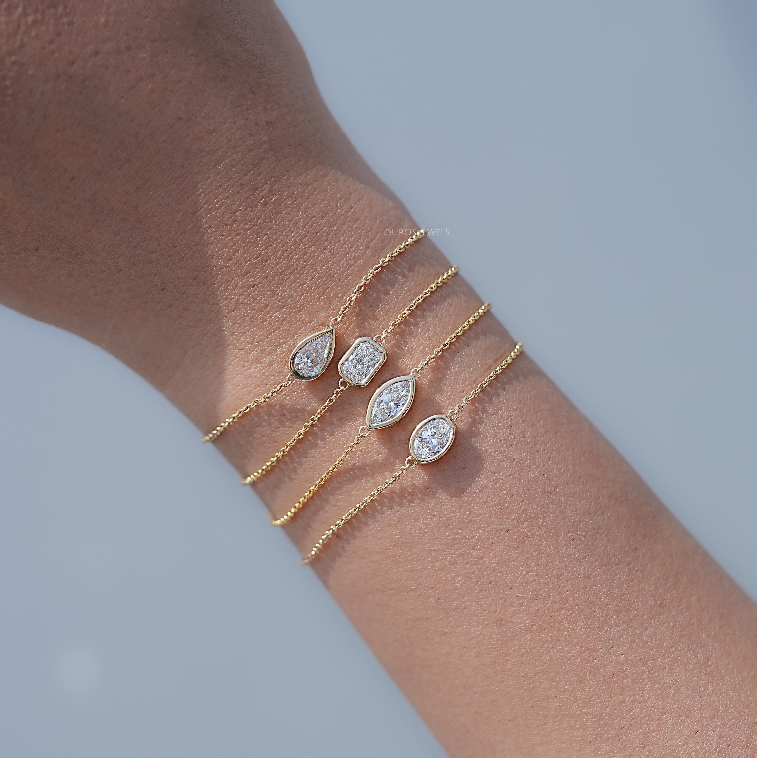 Oval Cut Lab Grown Diamond Solitaire Bracelet, Bezel Set CVD Diamond Bridal Bracelet, Pear, Marquise...