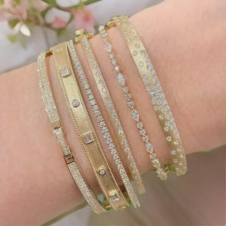 Flush Set Diamond Round Cut Moissanite Bangle, Marquise & Round Cut Diamond Bracelet, Flush Beze...